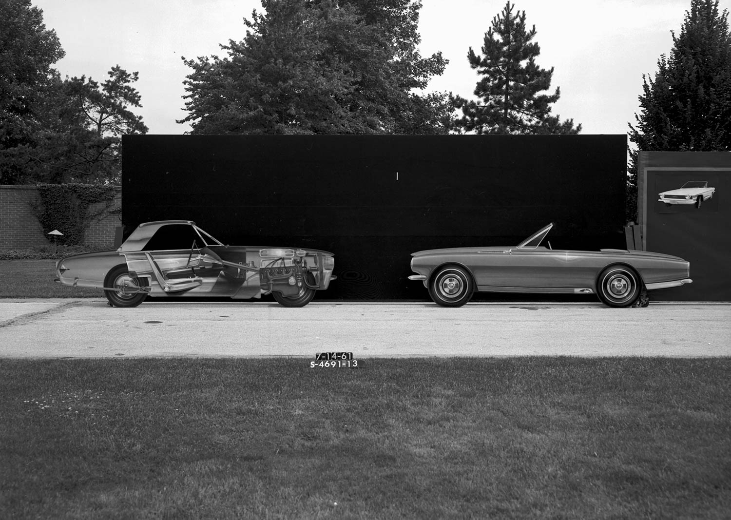 The outcry following the death of the two-seat Thunderbird in 1958 led designers to consider a Mustang with two seats. Even when management decided that the Mustang would have a rear seat, Ford designers would turn to the idea of a two-seat Mustang again and again. None made it to production.
