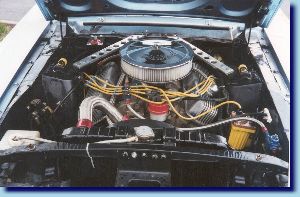 Mainway apparently offered a number of engine upgrades from the standard 320 horse-power S-code 390. Listed were the 410 horsepower 390 and a 550 hp 427. This car has a Mercury 410 ci engine (390 block) with a lot of work done to it. 12.5:1 compression, Holley 850 cfm and 5.13 gears. 450 horse-power and 11.3 et quarter miles. The advertisement picture is from Ford of Canada historical archives featured in Rare Finds section by Jerry Heasley Mustang & Fords (August 2000),pg 94. The car on our website was featured in Rare Finds by Jerry Heasley Mustang & Fords (March 2001), pg 86. We have not seen another one, but apparently there is one other known to exist. We have done some research on this with Peter Klutt of Legendary Motor Cars, who also hosts “Dream Car Garage” on Speedvision television in North America.”