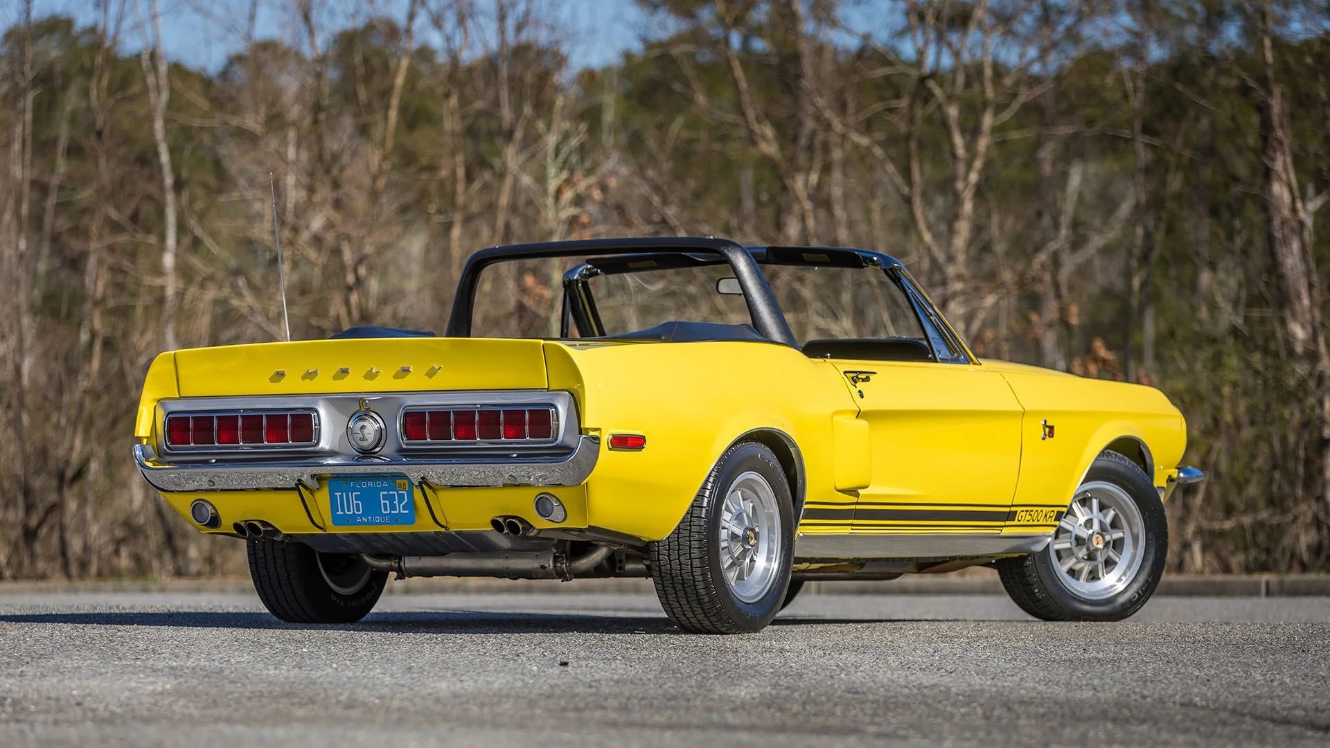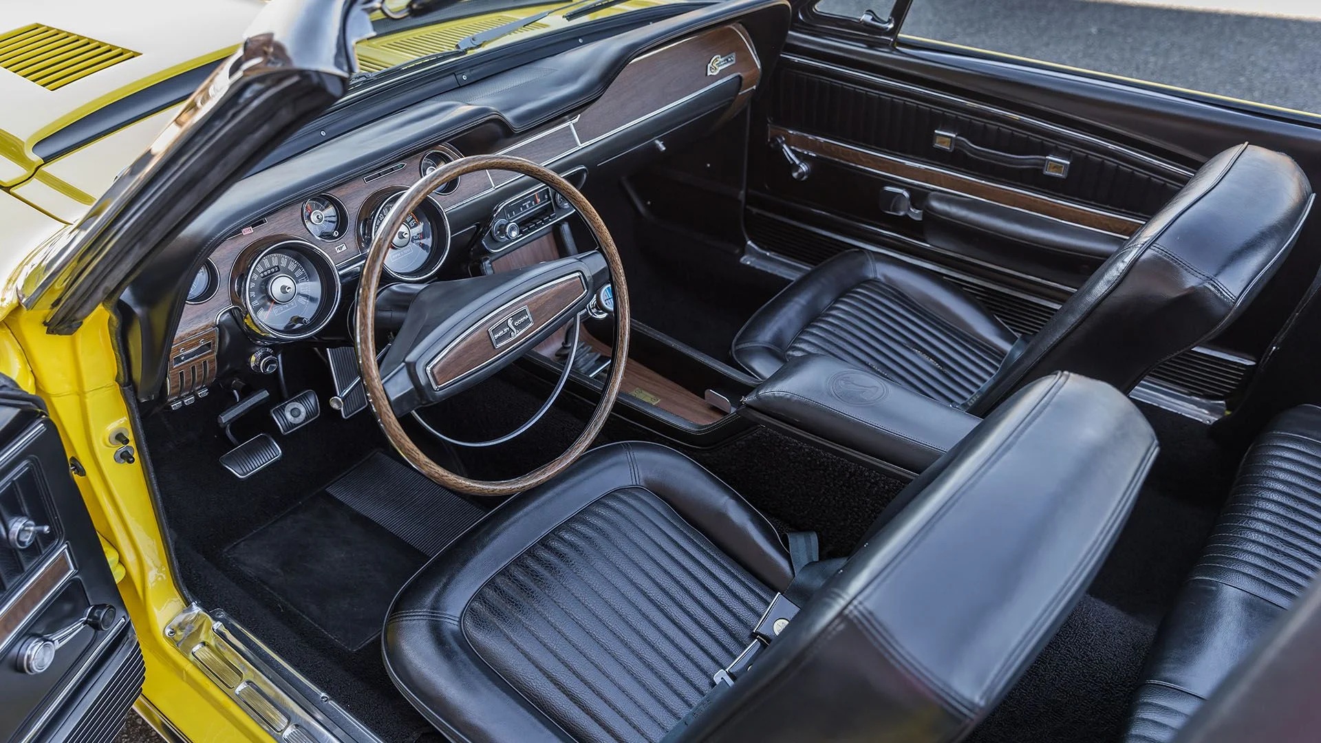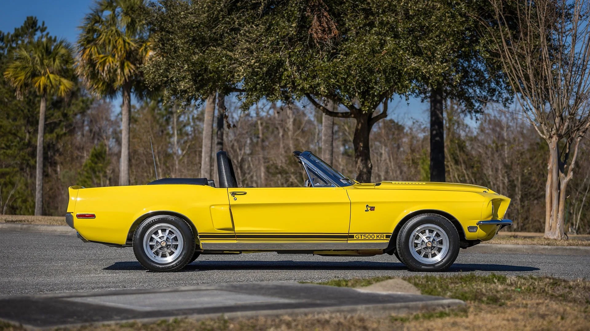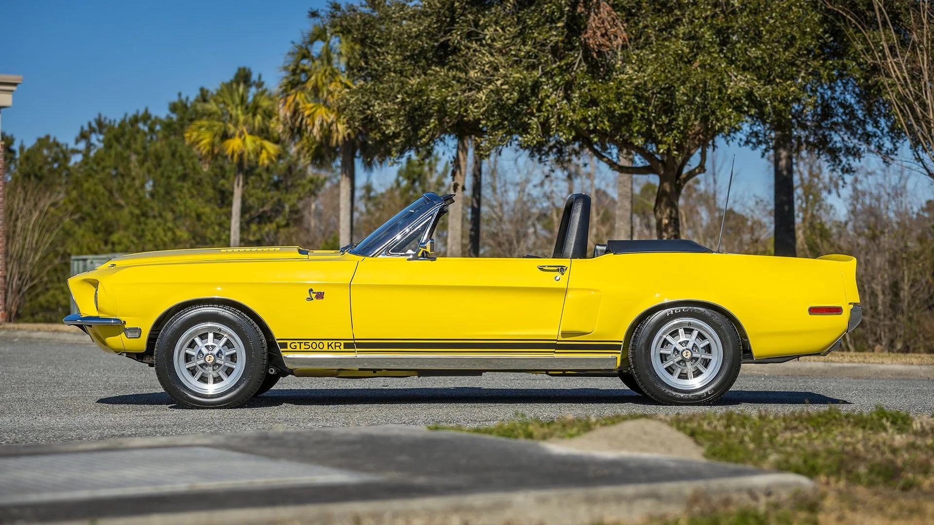 This GT500 KR is one of only 518 convertibles built in 1968 and is further distinguished as one of just 49 finished in Special Ford Yellow which accentuates its bold black “G.T.500 KR” rocker stripes and restored ten-spoke wheels wrapped in BFGoodrich Radial T/A tires. The Deluxe Marti Report confirms its authenticity, showcasing its unique production details and original Black Decor bucket seat interior.