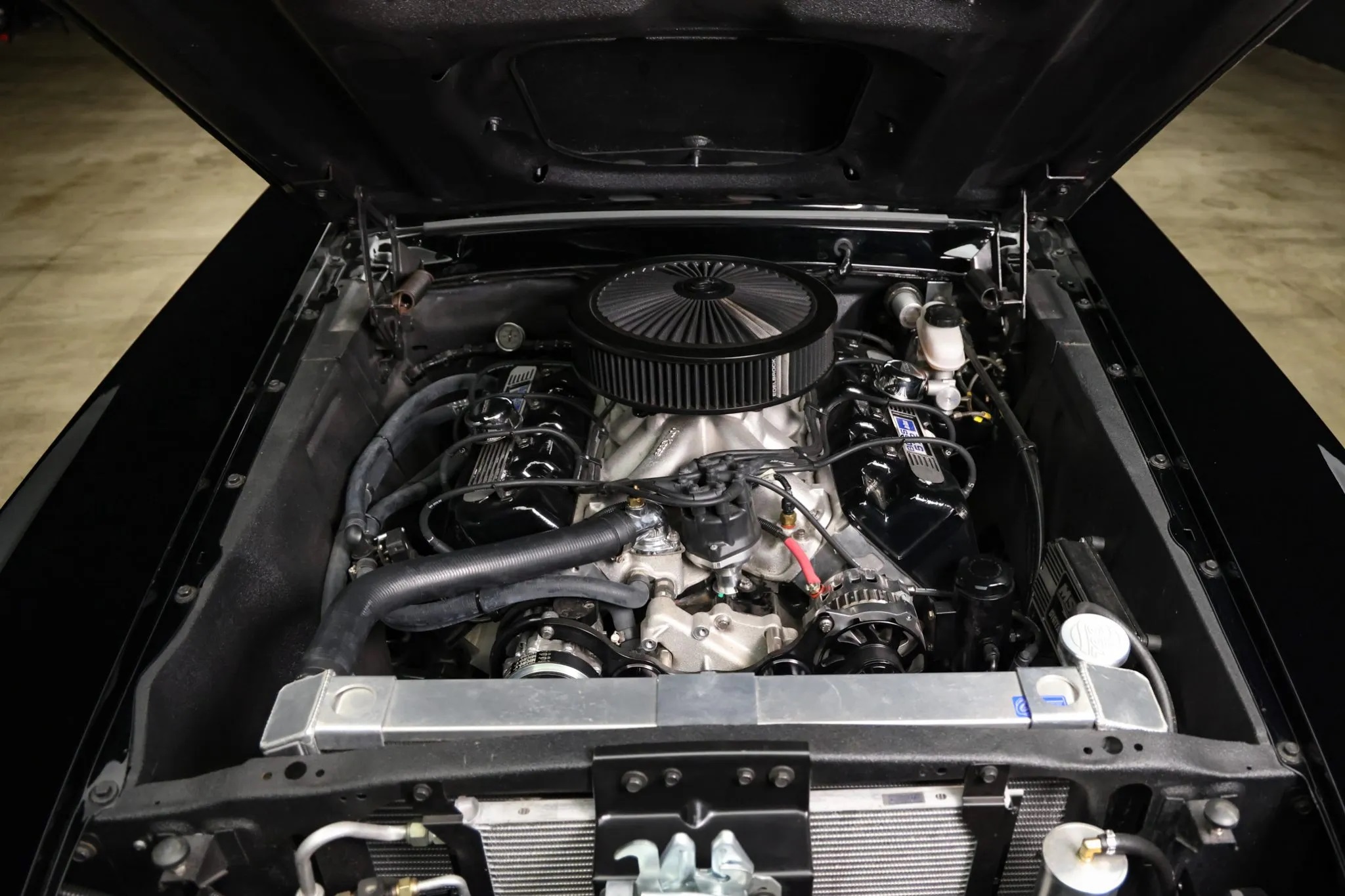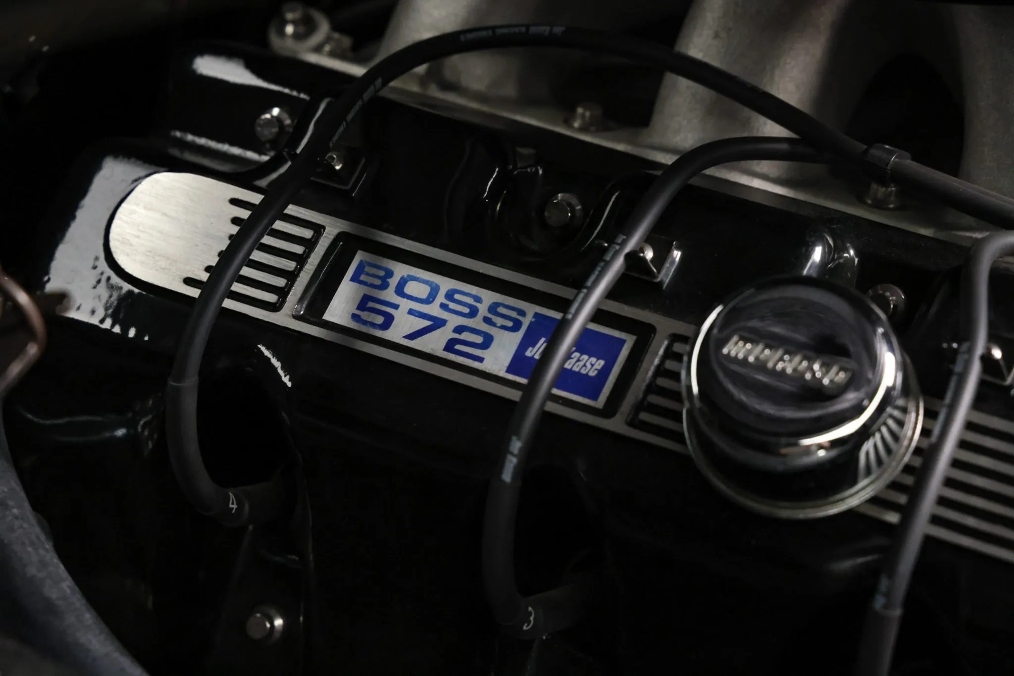 Under the hood lies an 815-horsepower, 572ci “Boss Nine” V8 engine paired with a six-speed Tremec manual transmission. This powerhouse features a 4340 steel crankshaft and connecting rods, Diamond forged pistons, aluminum cylinder heads, WW Engineering aluminum roller rockers, a single-plane intake manifold, a Holley electronic fuel injection system, and a Be Cool radiator.