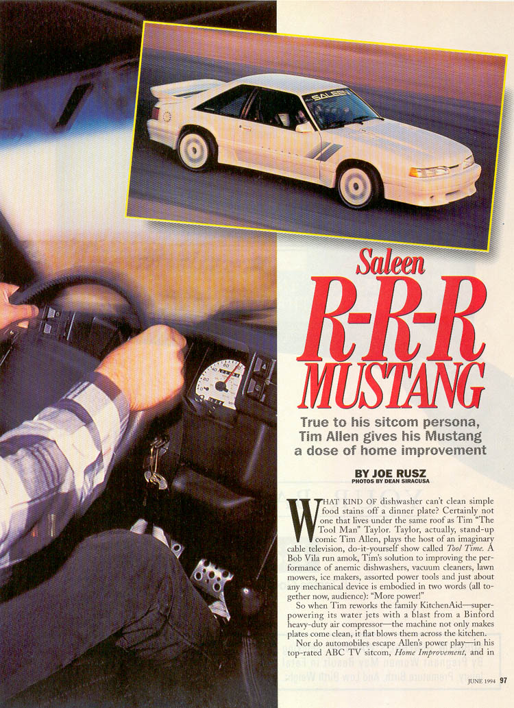 You can now own this one-of-a-kind Saleen Mustang RRR as its up for sale over at hemmings.com for $85,000. The current owner purchased the Mustang in 1997 and its presumable when Tim Allen sold the car. Check out all the photos below including a Road and Track article on Tim Allen and his custom built Saleen RRR Mustang.