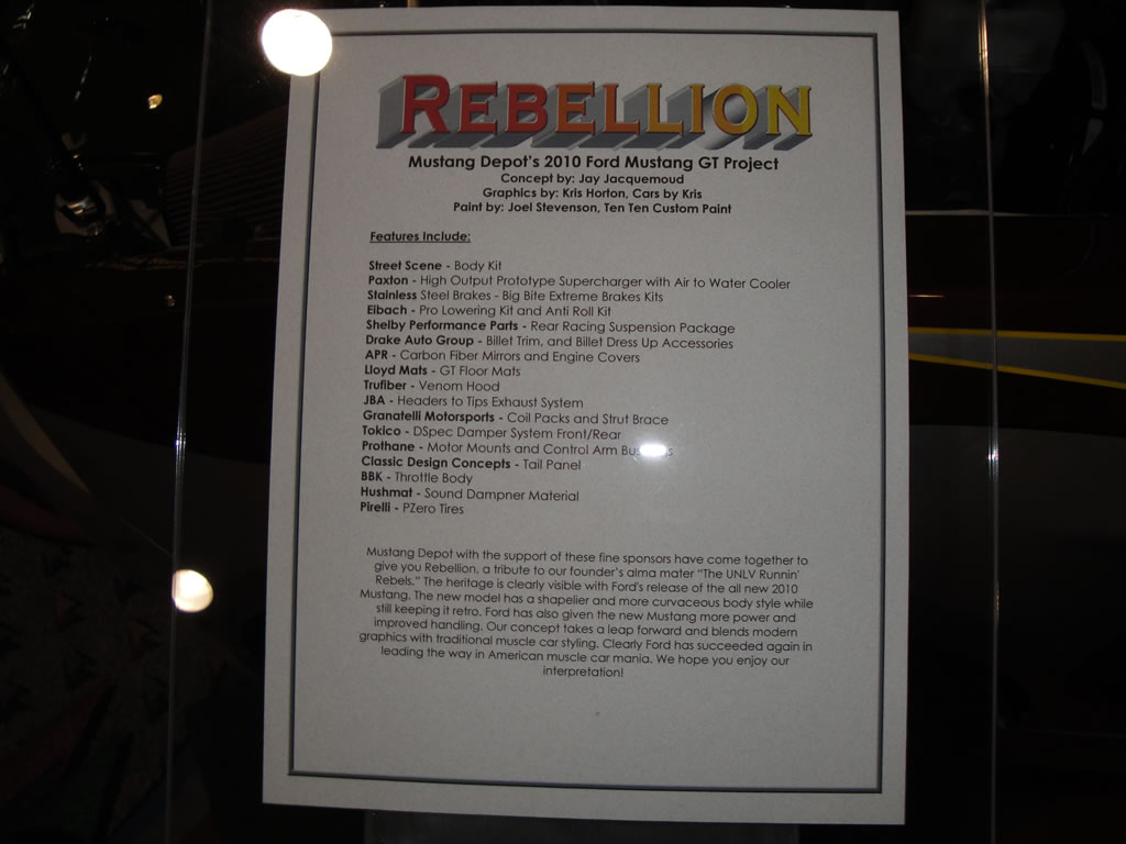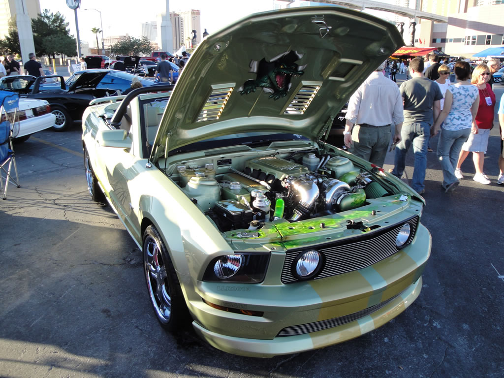 I made it back from the SEMA show in Las Vegas in one piece and a little lighter in the pocket but the whole experience was amazing. If you have the means I recommend attending the show to fully take in all the vendor setups and custom rides. Some of the celebrities I saw strolling around were Chip Foose, Richard Petty, Rich Christensen, host of Pinks, the crew from ‘Pimp My Ride’, Parnelli Jones, John Force, Steve Saleen and Carroll Shelby. I tried to take photos of all the Mustangs but I am sure I missed a few. Below I have posted a second round of photos. You can see my first batch of photos in a previous post. I will be writing stuff about certain vehicles I saw in future posts so stay tuned. Enjoy the photos for now…