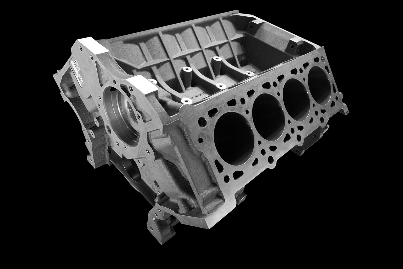 This is the first Ford application of the technology, and it offers improved overall performance and durability, along with functional benefits of reduced friction between piston rings and cylinder bores, improved heat transfer due to increased surface contact area and a weight savings of 8.5 pounds compared to a typical steel-sleeved aluminum block. A mechanical roughening process provides higher material adhesion for the spray coating.