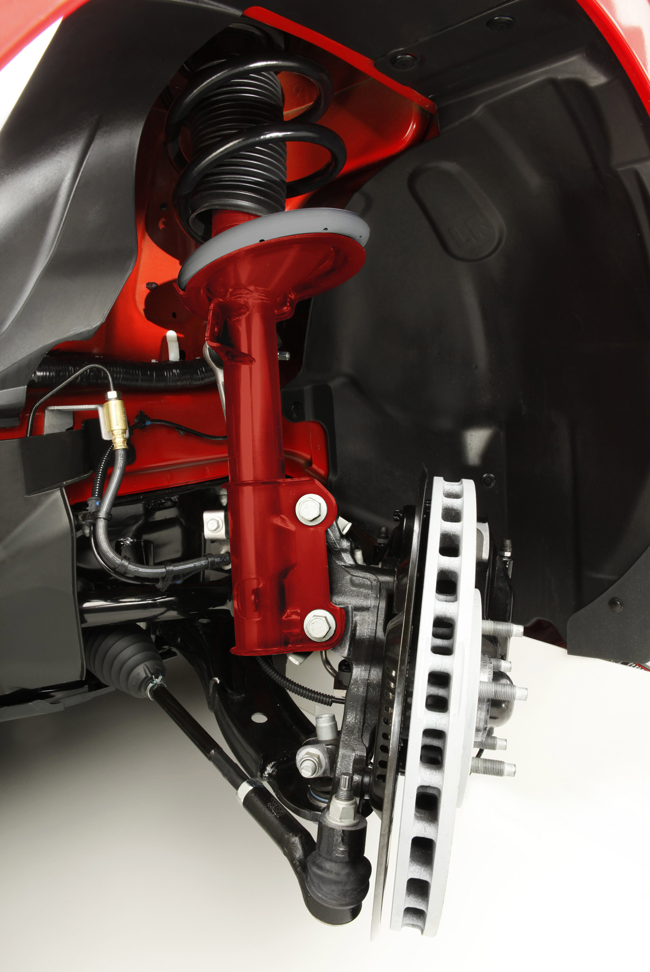 Slotted brake dust shields were added to improve brake cooling and handling, and a new pedal box improves clutch and pedal efforts even more. A lowered ride height of 11 millimeters in front and 8 millimeters at the rear provides a sportier attitude and improved handling.