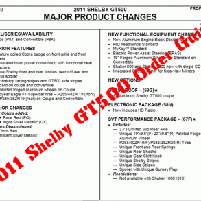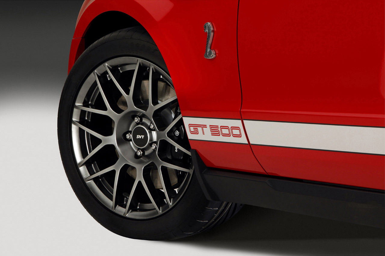 The optional package also offers unique styling, lighter wheels, a higher rear axle ratio and stiffer springs, and it is available on both the convertible and coupe. Data show the 2011 coupe with the SVT Performance Package is 3.0 seconds faster per lap than the 2010 Shelby GT500 on a 2.3-mile test track.