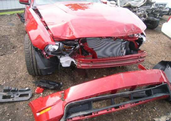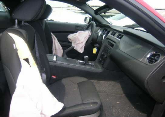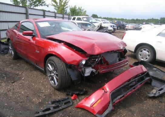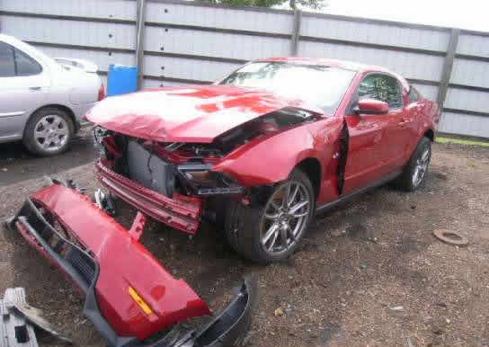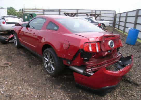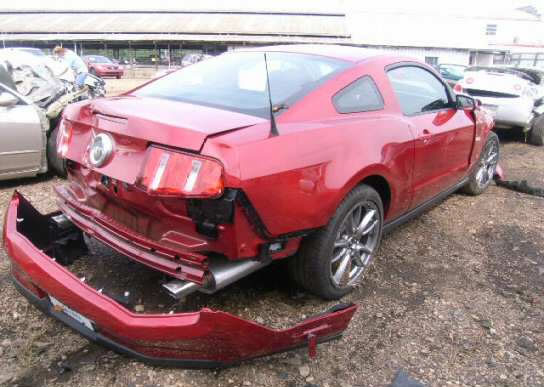 This is probably not the first 2011 Mustang GT 5.0 to get into an accident but its the first one I have seen pictures of. The red candy metallic 5.0 coupe only had 743 miles on the odometer and looks like it was hit in the rear and pushed into another vehicle. The wreck caused both side airbags and the driver airbag to deploy but the passenger airbag was not deployed, maybe because no passenger was sitting there but why did the passenger side airbag go off. This 2011 Mustang GT was a base model with cloth seats and six-speed manual trans. Check out a slew of photos after the jump…