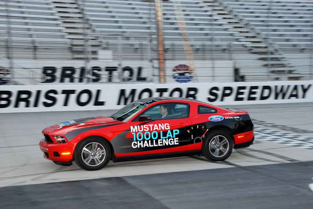 BRISTOL, Tenn., June 24, 2010 – The 2011 Ford Mustang, which made history when it became the first car ever to deliver more than 30 mpg and 305 horsepower, has set a new record by running 1,457 laps at Bristol Motor Speedway while averaging 48.5 mpg.