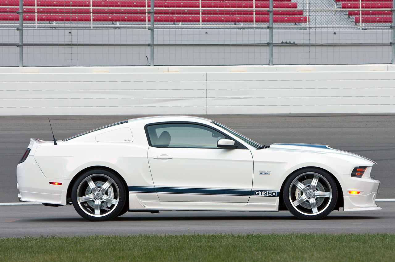 During the opening night gala at the 2010 Barrett-Jackson collector car auction Carroll Shelby alongside his Shelby American team unveiled a 2011 Shelby GT350 Mustang post-title upgrade package for the 2011 Mustang GT. The 2011 Shelby GT350 Mustang post-title package will include a Ford Racing supercharger pushing horsepower for the Mustang GT 5.0-liter to around 500. Other goodies include Ford Racing suspension, Baer brakes, Borla exhaust and Cragar wheels. MSRP for the package will be $33,995 which does not include the Mustang GT.
