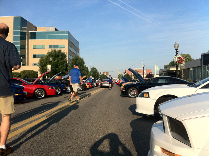The 2011 Woodward Dream Cruise took place this past Saturday with Ford having one of the largest displays of classic and modern Mustangs ever. Mustang Alley was located at the intersection of Woodward Ave. and 9 Mile Road in Ferndale where there was expected to be over 700 classic Mustangs along with loads of other Ford muscle machines. This year Ford featured one of every model of Mustang since the vehicles inception in April of 1964.