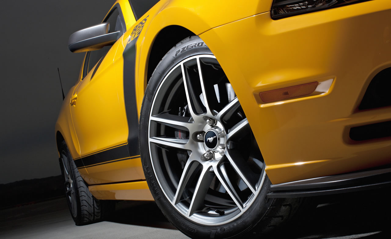 A new hockey stick graphic featuring reflective stripes is added to the new Boss, calling back the 1970 Boss 302. 2013 Boss 302 and Boss Laguna Seca models feature new School Bus Yellow paint, honoring Parnelli Jones’ 1970 Trans-Am championship car prepared by Bud Moore.