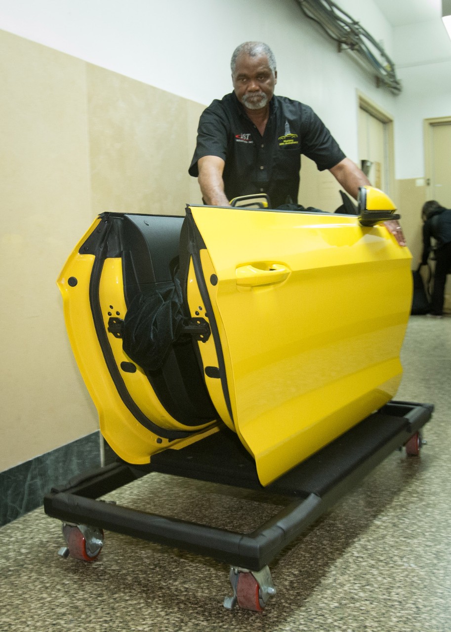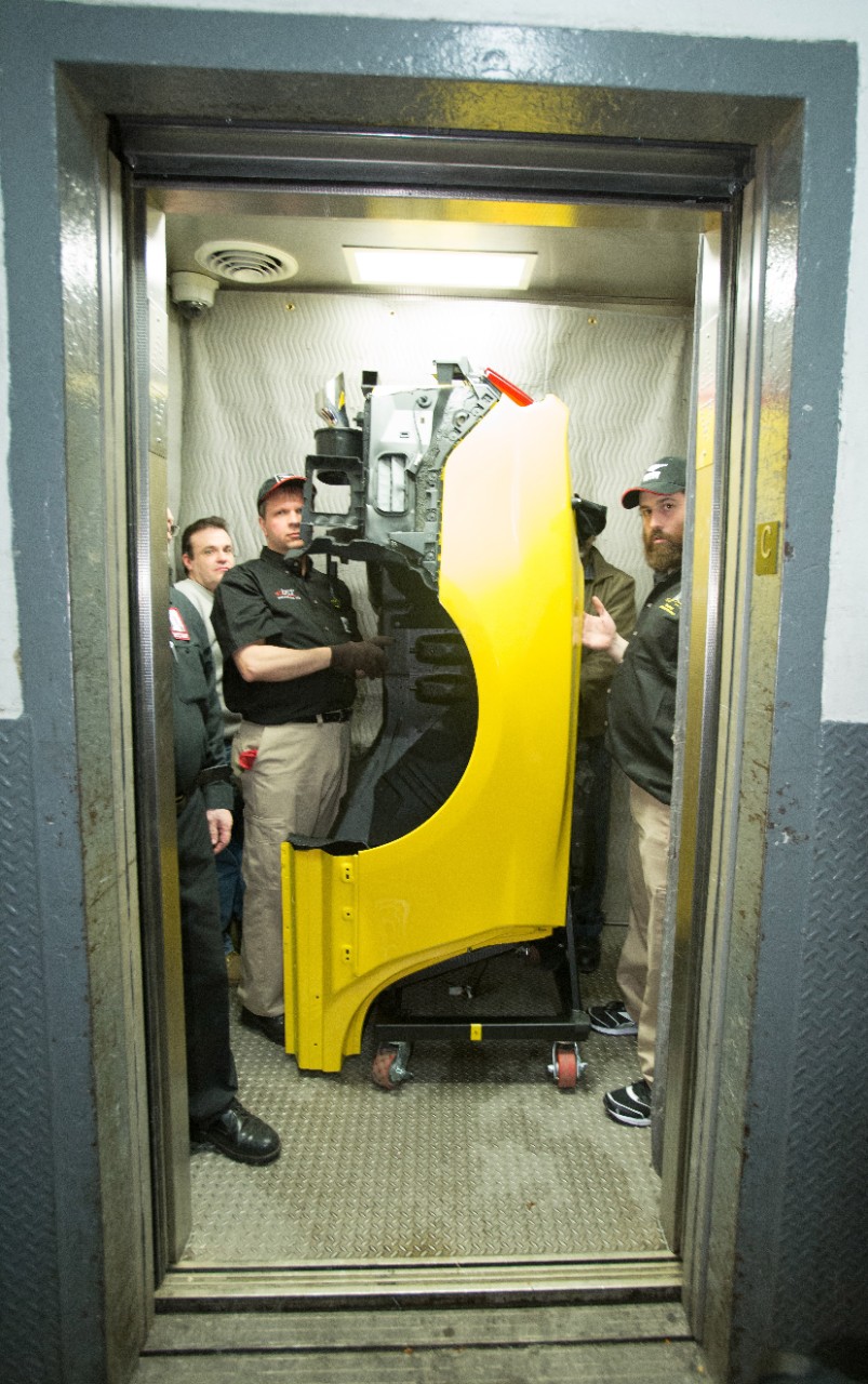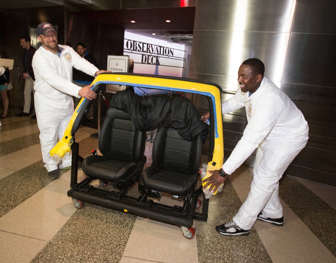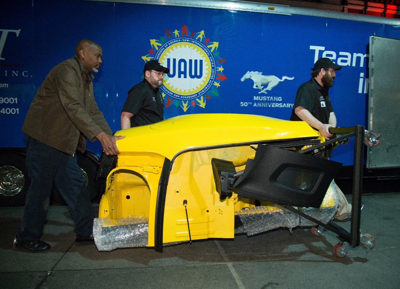 With only six hours to complete the assembly of a 2015 Ford Mustang Convertible on top of the Empire State Building, Ford and DST Industries engineers came through in stunning fashion. Visitors to the 86th floor observation deck will have the opportunity to view the convertible Mustang for two days at which time Ford and DST will disassemble the 2015 Mustang and take it back down the elevators they brought it up.