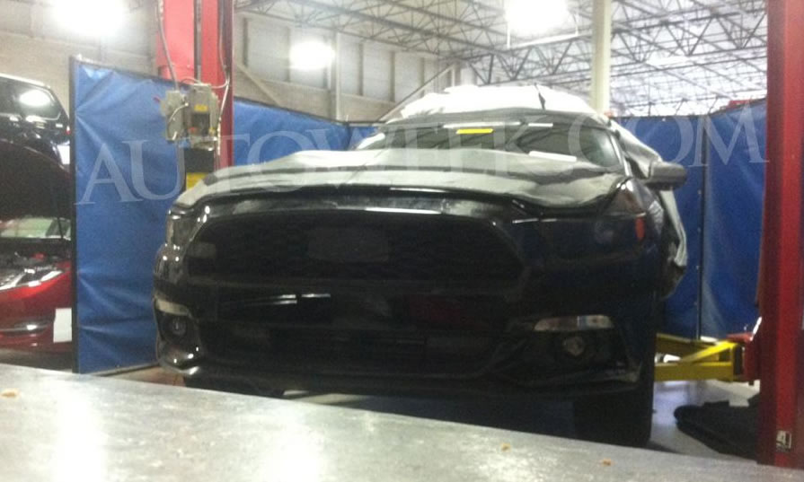 Ford is finding out the hard way how difficult it is to keep the all-new 2015 Mustang under wraps given today’s world of cameras and smartphones but while some may think these are spy photos others say they are staged. Either way the new spy pics from inside Ford have us all giddy with excitement once again. The new photos don’t reveal anything new but we do get a much closer view of the front fascia and how the front headlights, fog lights and grille are positioned. Keep reading to see the close up view of the 2015 Mustang front fascia.