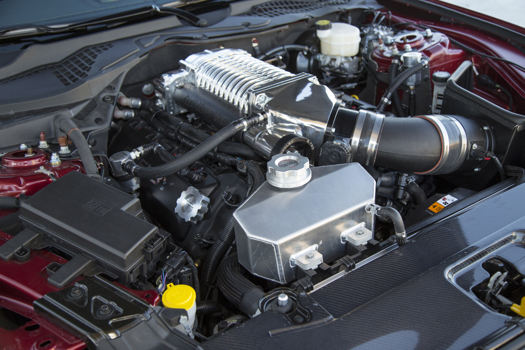 Each 2015 Shelby Super Snake begins as a Ford Mustang GT with a 5.0 liter V8 and Ford Performance supercharger connected to a six speed manual or automatic transmission. Ford Mustangs are manufactured in Ford Motor Company’s Flat Rock, Michigan plant and the Shelby Super Snake is built at Shelby American in Las Vegas.
