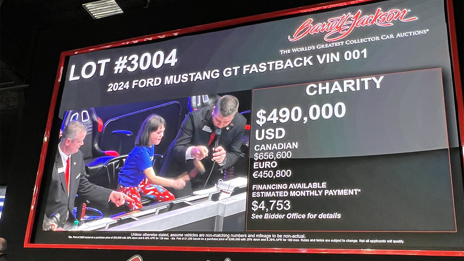 The last charity lot on Saturday for the 2023 Scottsdale auction was this VIN 001 Ford Mustang GT Fastback, and when the hammer came down, the high bid was a staggering $490,000 … but that wasn’t the final amount that would be donated to the charity listed above, an additional $50,000 donation from San Tan Ford and another additional $25,000 was donated by Michelle Mauzy, noted philanthropist and longtime member of the Barrett-Jackson family, bringing the total amount well over half a million dollar, $565,000 to be exact, with the entire amount benefiting JDRF, the leading global organization funding type 1 diabetes (T1D) research.