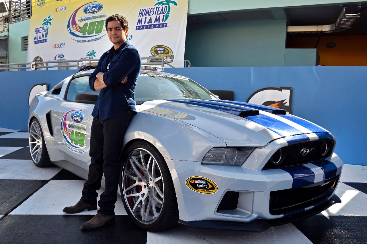 Piloting the highly-customized Mustang was one of the stars of the new movie coming out in March of 2014, actor Ramon Rodriquez who got the opportunity of a lifetime to lead 43 sprint cup cars around the track. Keep reading to see a few promo shots of him and the Need for Speed Mustang.