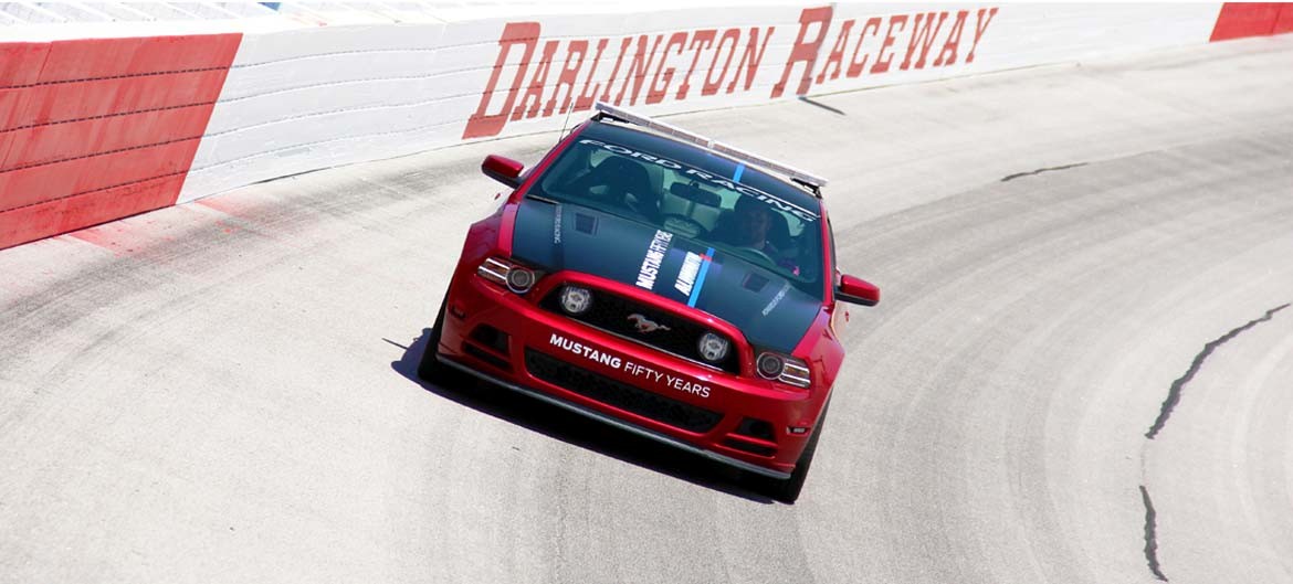 When the gleaming ruby red Mustang GT Aluminator XS paces the field of thundering NASCAR Sprint Cup machines at the Bojangles’ Southern 500 onSaturday, April 12, at Darlington Raceway, it also will be waving the green flag for a year-long recognition of Mustang’s 50th anniversary.