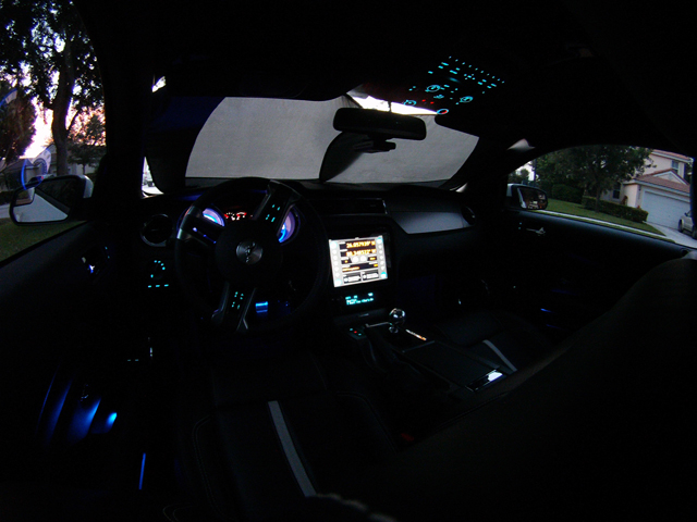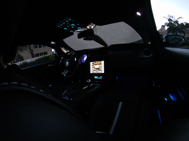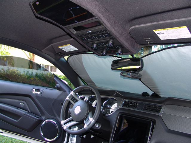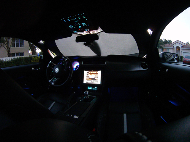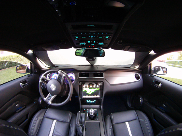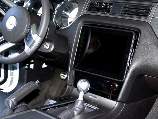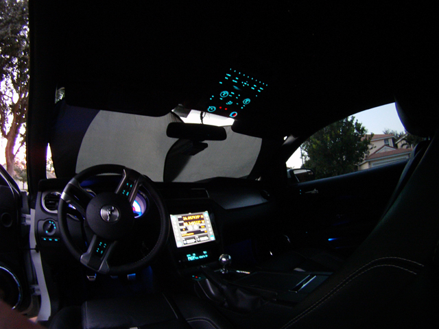 A forum member over at TheMustangSource got his creative juices flowing for an amazing iPad install on his newly purchased 2011 Mustang GT. Not only did he install an Apple iPad in his 5.0 but he moved the radio/Sync/AC controls to the headliner which makes for one insane looking cockpit. Original he ordered his new 5.0 with a navigation system but when the car arrived somehow things got mixed up and he ended up with a rear-view camera instead. Wanting Navigation and some other functions not available on ordinary GPS receivers he opted for the iPad to fully enjoy his time on the road. Check out the photos below especially the night ones. Does it not look like the cockpit of an airplane?