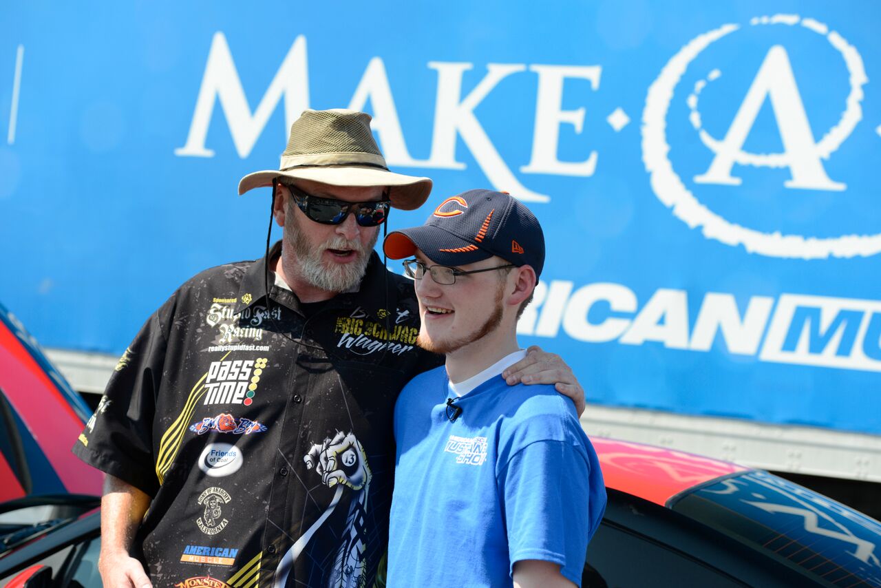 A hallmark of the AmericanMuscle Car Show has always been charity, and this year’s show went further than ever. The proceeds of the show benefitted Make-A-Wish®, which totaled in at a $55,000- our largest amount raised to date; however, the charity didn’t stop there! 18 year old Mustang enthusiast Jonathan Mullins of Portage, MI wished for the AmericanMuscle Team to turn his 2000 V6 into his dream car. As soon as AmericanMuscle heard about Jonathan’s wish, the team sprang into action. After spending hours talking to AM designers creating a sketch of his dream ‘Stang, the wheels were put into motion and the car started coming together. At the show, Jonathan’s Mustang was unveiled to him and the rest of the show’s attendees for the first time, leaving Jonathan absolutely speechless!