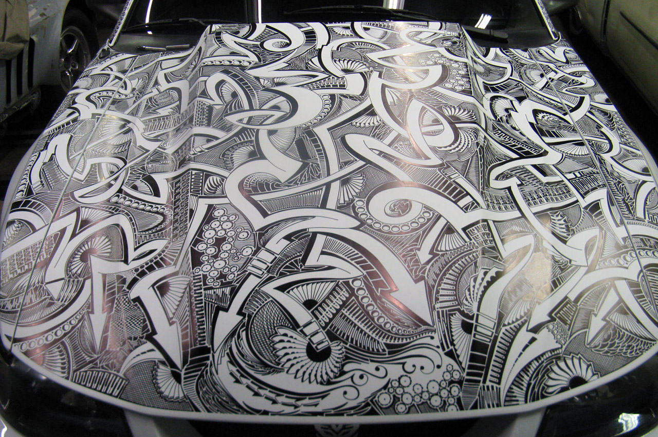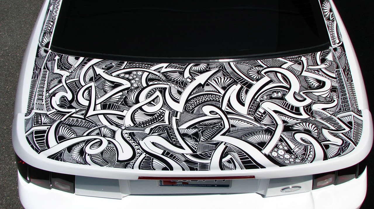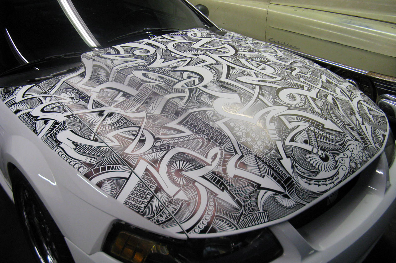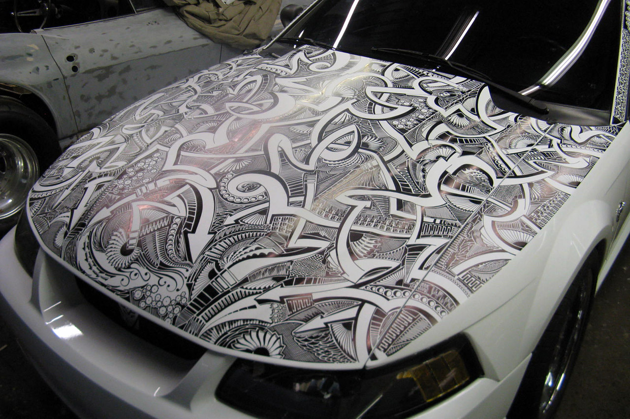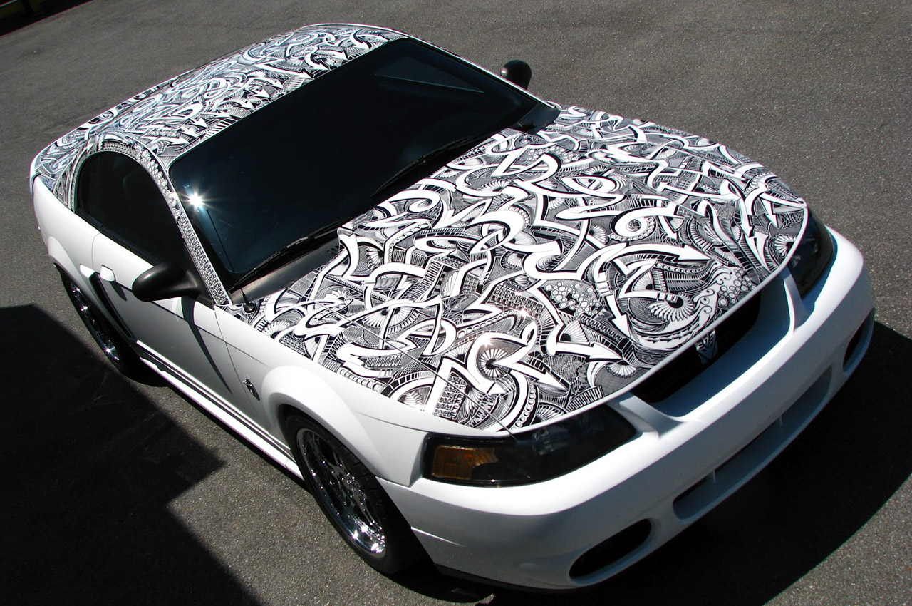 Artist Chris Dunlop known as ‘Pinstripe Chris’ has a very unique talent that involves a common household item, the Sharpie Marker. A pinstriper by trade Chris took notice of another artist’s work with a Sharpie Marker and a Lamborghini Gallardo in 2010. Ever since than Chris has been free handing his artistic creations on anything he can get his hands on including automobiles. His latest creation is an amazing free hand designwith a Sharpie marker on a 1999 Mustang GT which took him around 50 hours. A layer of clear-coat paint makes his work permanent and long lasting for all to see for years to come. Check out the complete gallery of his free hand Sharpie work below.