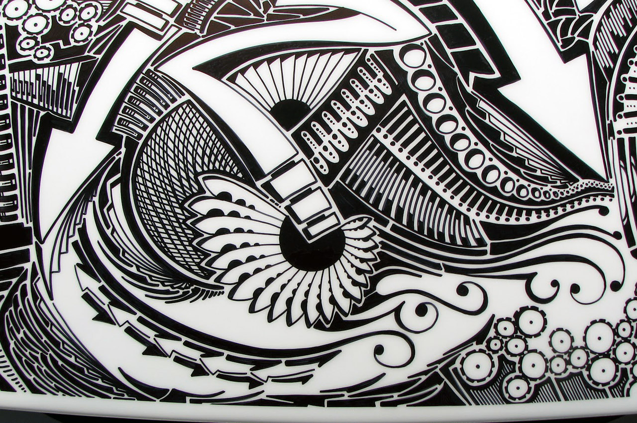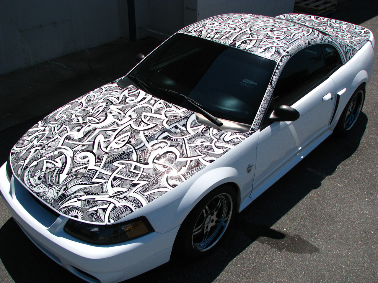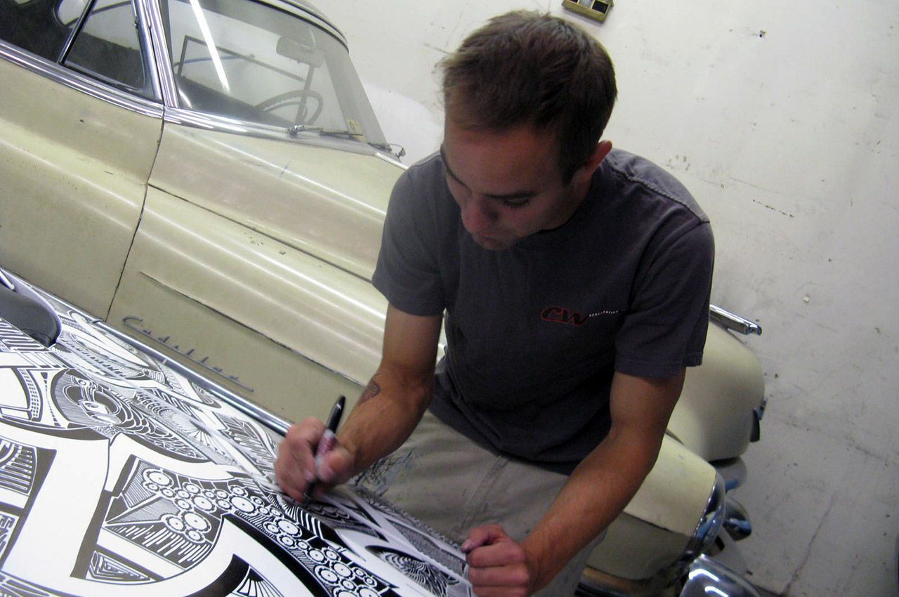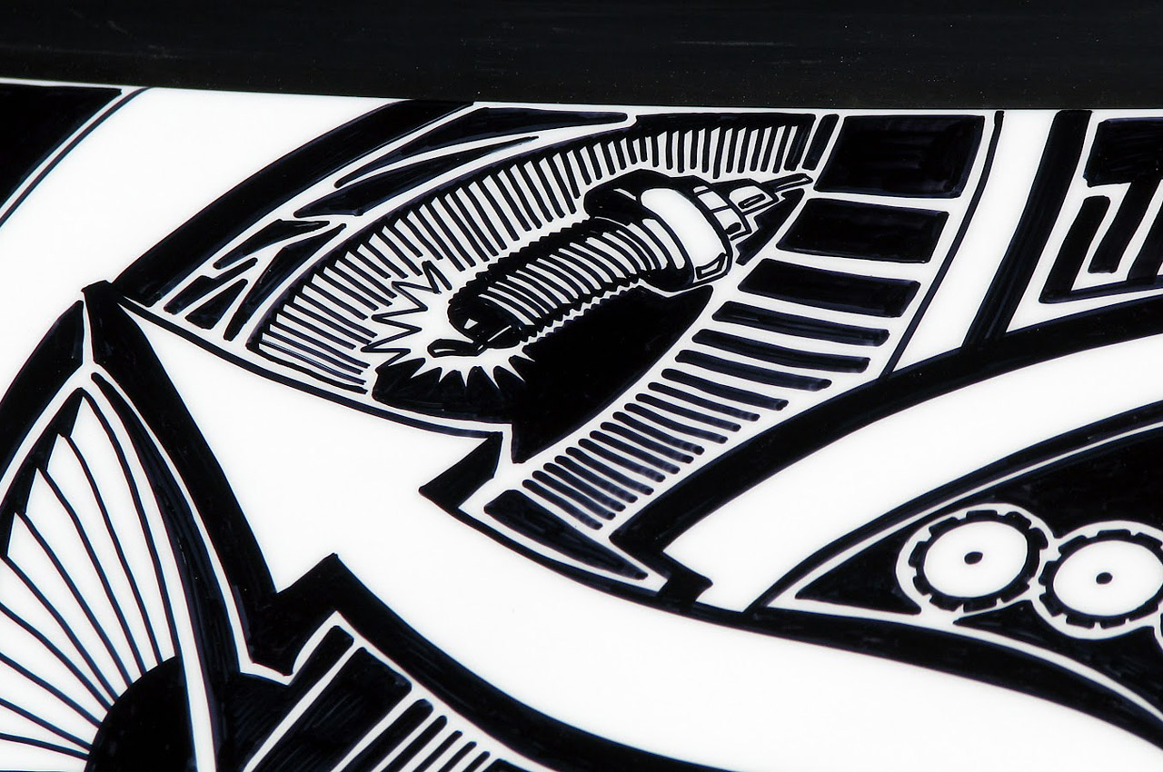 Artist Chris Dunlop known as ‘Pinstripe Chris’ has a very unique talent that involves a common household item, the Sharpie Marker. A pinstriper by trade Chris took notice of another artist’s work with a Sharpie Marker and a Lamborghini Gallardo in 2010. Ever since than Chris has been free handing his artistic creations on anything he can get his hands on including automobiles. His latest creation is an amazing free hand designwith a Sharpie marker on a 1999 Mustang GT which took him around 50 hours. A layer of clear-coat paint makes his work permanent and long lasting for all to see for years to come. Check out the complete gallery of his free hand Sharpie work below.