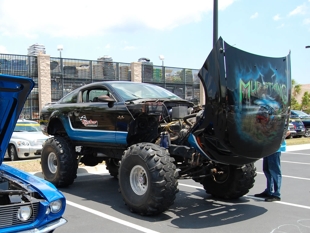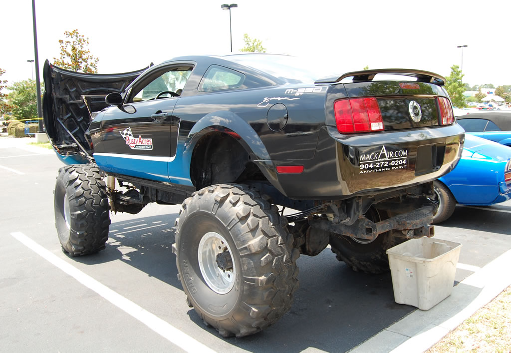 This past weekend in Jacksonville, Florida the Mustang Club of America held its River City National Mustang show which featured around 400 Mustangs from all over the U.S.  The show was a three day event that featured several classic and modern Mustangs along with one unique vehicle.  That vehicle was a custom one-of-a-kind S197 4X4 Mustang Mudder.  Looks like BIGFOOT has a baby brother.  Check out the photos after the jump.