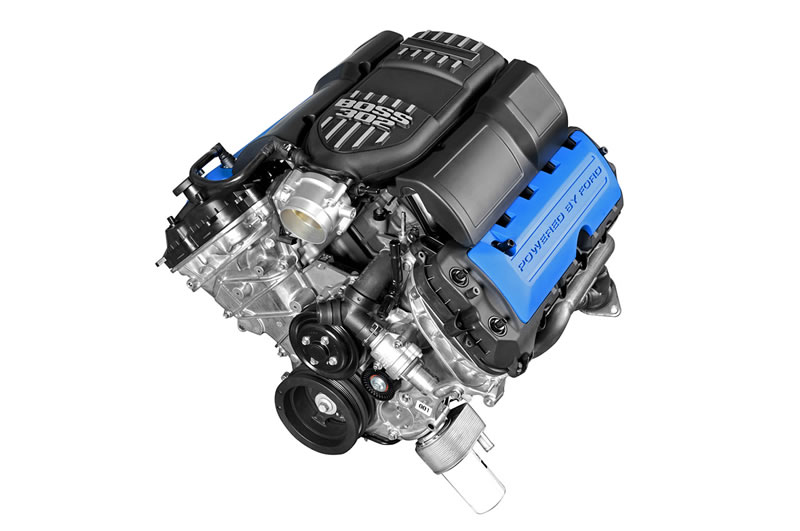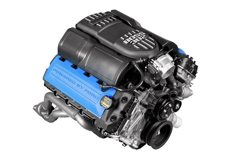 Ford Racing’s aluminum 5.0L Mustang Boss 302 crate engine is a modern 5.0L 32-valve DOHC V-8 that uses advanced features like Twin Independent Variable Camshaft Timing (Ti-VCT) and high flow CNC cylinder heads to deliver 444 horsepower and 380 ft.-lb.+ of torque (with premium fuel).