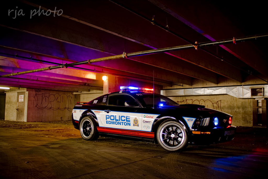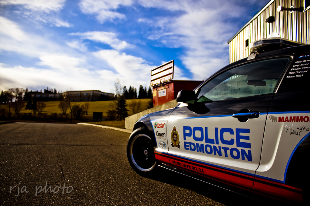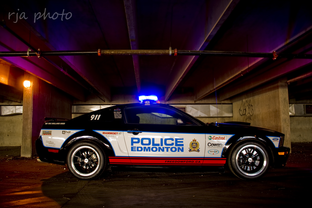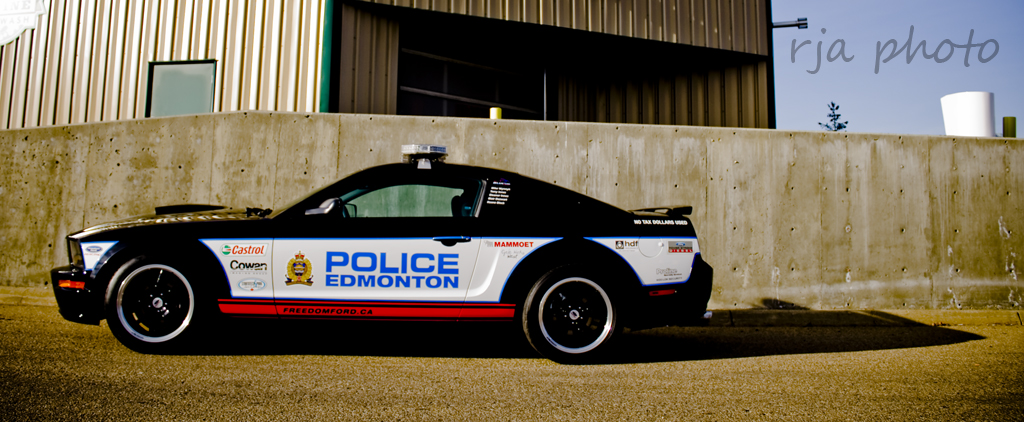 If you happen to live in or around Edmonton, Canada this is your warning. Edmonton Police have added a 500 horsepower Roushcharged Ford Mustang to the force using no tax dollars as stated in graphics on the Mustang. I must say it’s one sinister looking police car with the Black FR500 wheels, police light package and the mostly black paint job. Check out all the photos after the jump…