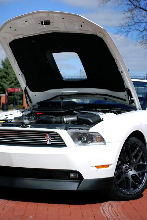 The Shaker utilizes all factory attachment points, contains OEM level under-hood materials and retains the factory strut tower brace. The installation requires no paintwork and utilizes the design of the factory aluminum hood for a straightforward process. Metro Detroit Ford Dealer, Tom Holzer Ford took delivery of the first 5.0 Shaker Hood System.