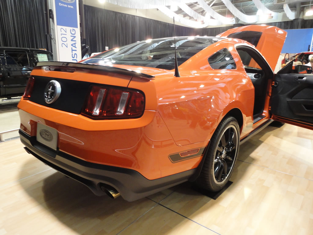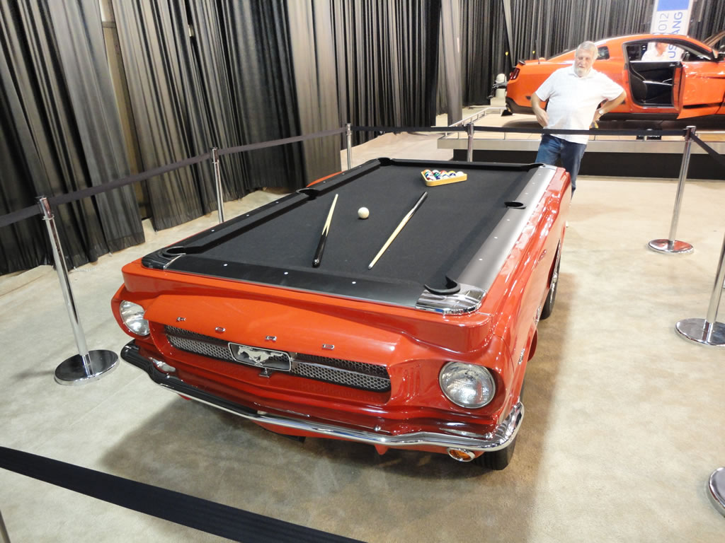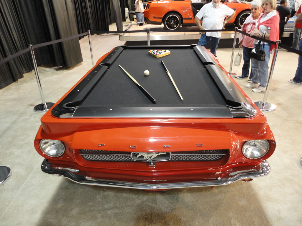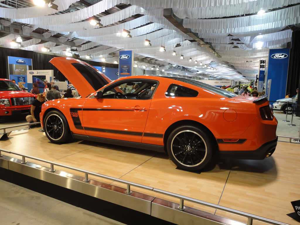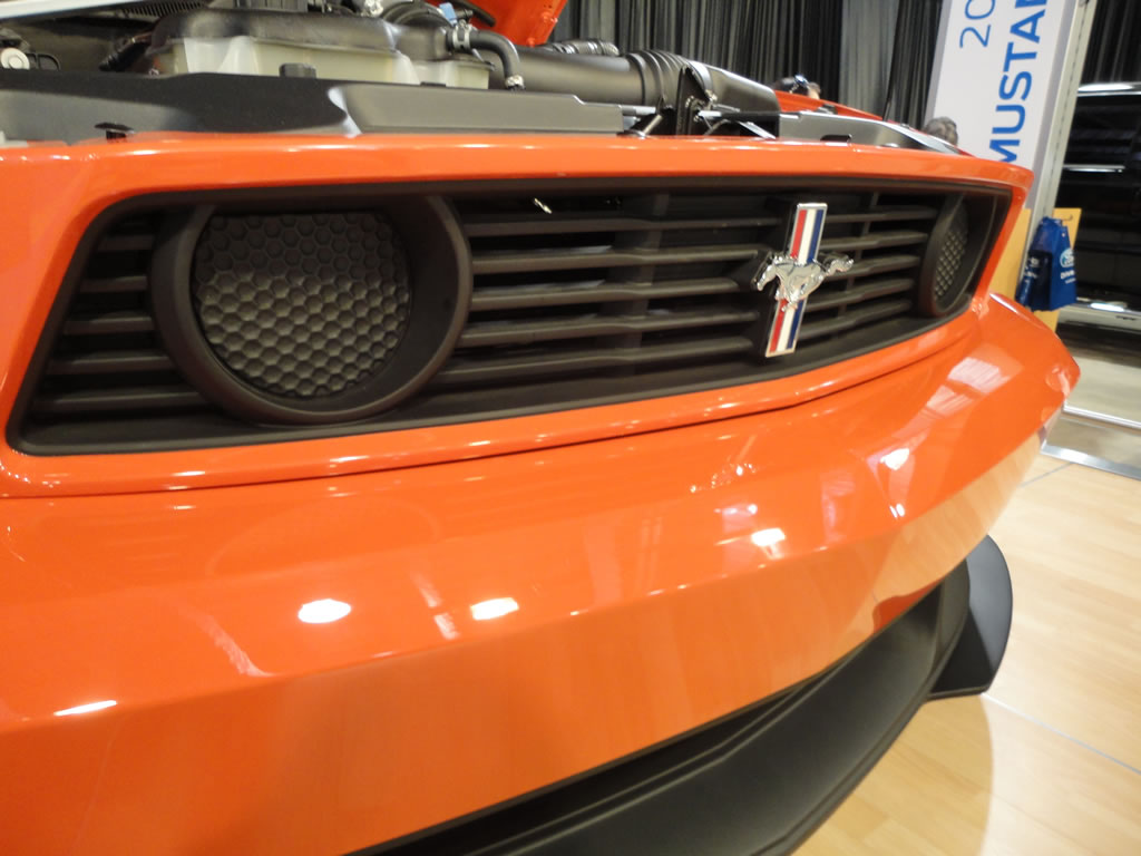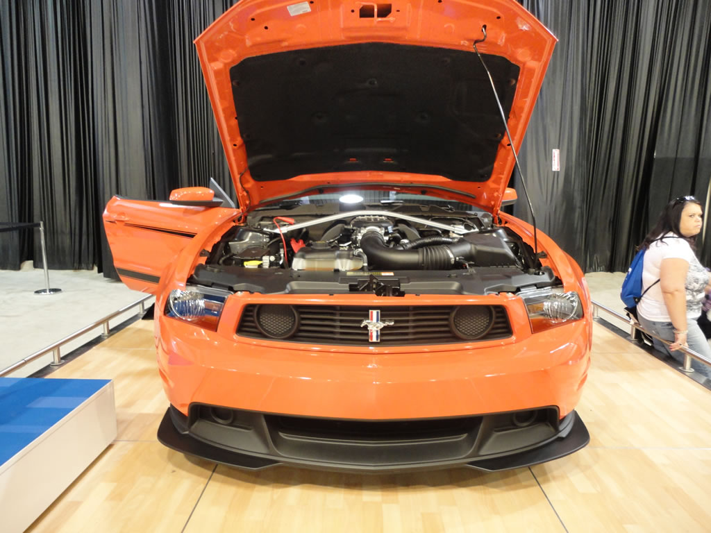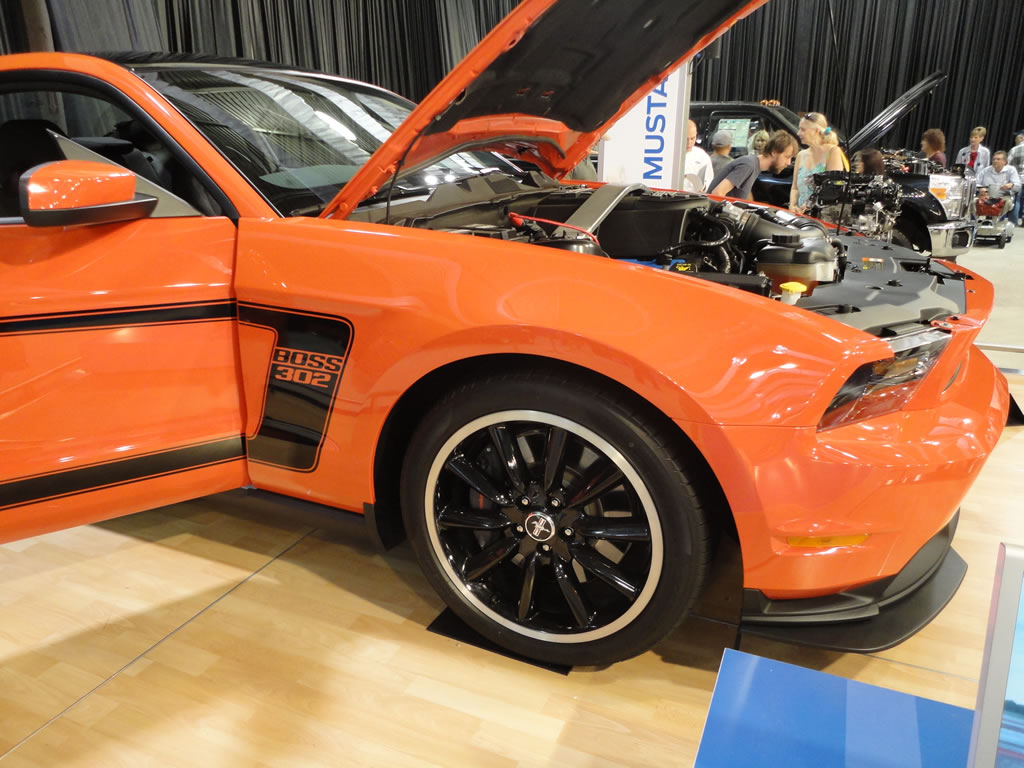 While at the State Fair of Texas today I wandered through the Ford area of vehicles and to my surprise there was a competition orange 2012 Mustang Boss 302 on display. I took a few photos for your viewing pleasure which you can see after the jump. Ford also had on display a 2011 Mustang GT 5.0, a 2011 Mustang V-6 and a cool classic Mustang pool table which could be yours for a mere $14,995.