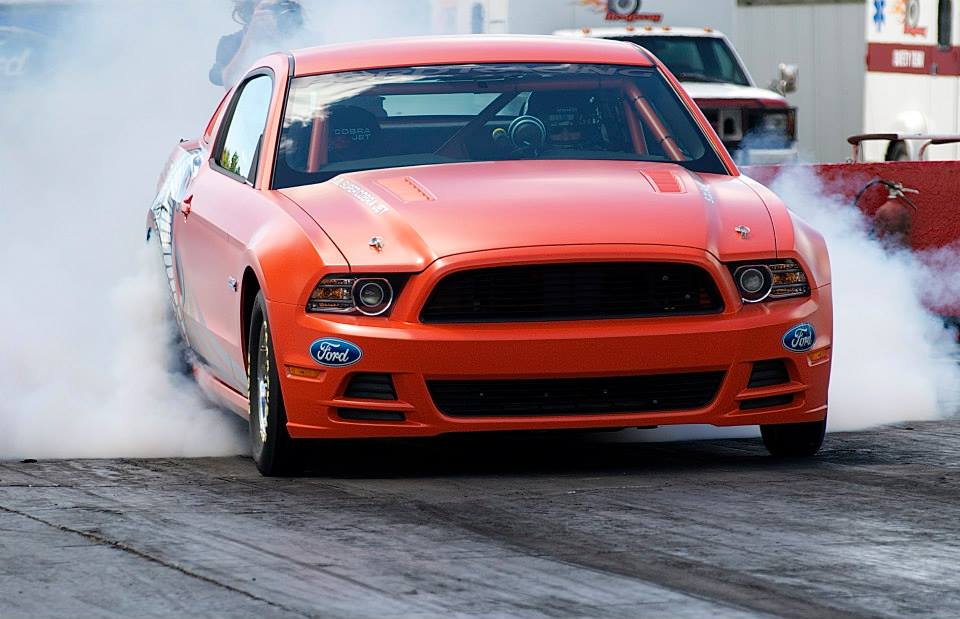 Ford is partnering with Barrett-Jackson to raise money for the National Multiple Sclerosis Society by auctioning off a one-of-a-kind prototype NHRA-ready 2014 Mustang Cobra Jet. Ford will auction the custom orange Mustang Cobra Jet at the Las Vegas Barrett-Jackson Collector Car auction on Saturday September 28 at the Mandalay Bay resort & casino with all proceeds to benefit the National Multiple Sclerosis Society.
