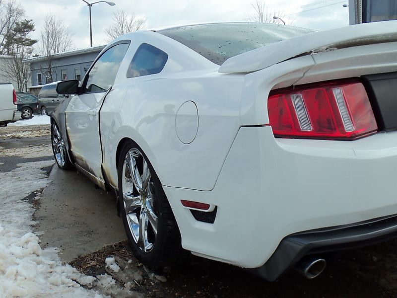 For some reason I don’t think thats going to buff out. This 2010 SMS 460 Ford Mustang met its untimely demise by way of fire with only 900 miles on the clock. You might remember this SMS Mustang as I previously wrote about it being found engulfed in flames at Bob Bell Ford in Maryland. On a positive note if you ever wanted to own an SMS Mustang now is your chance because the first bid wins this one at $3,250. Check out all the photos after the jump…