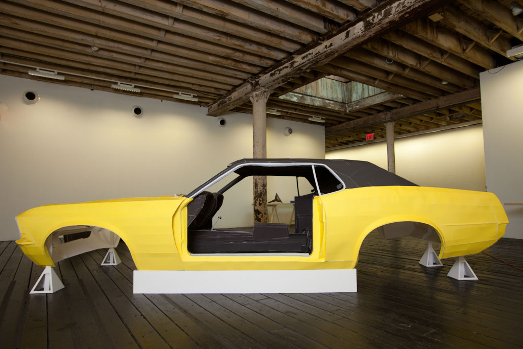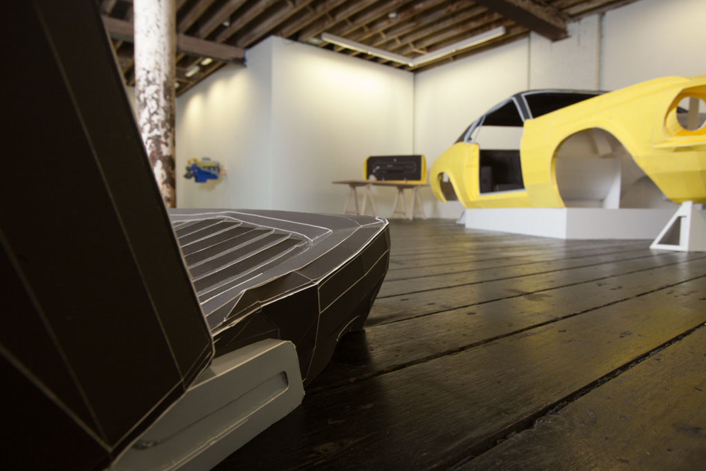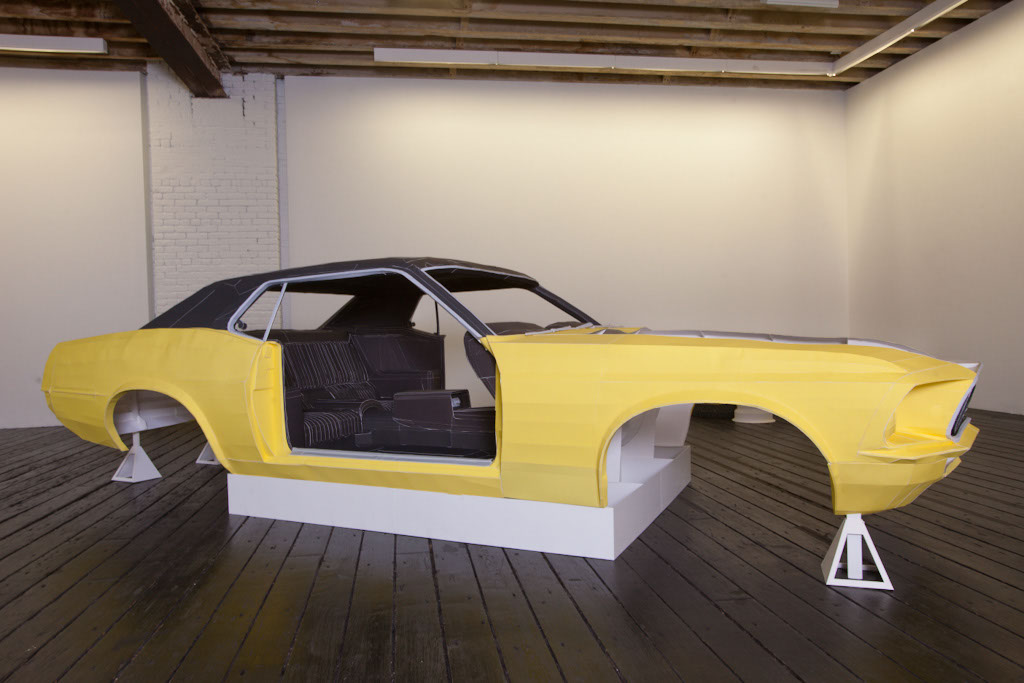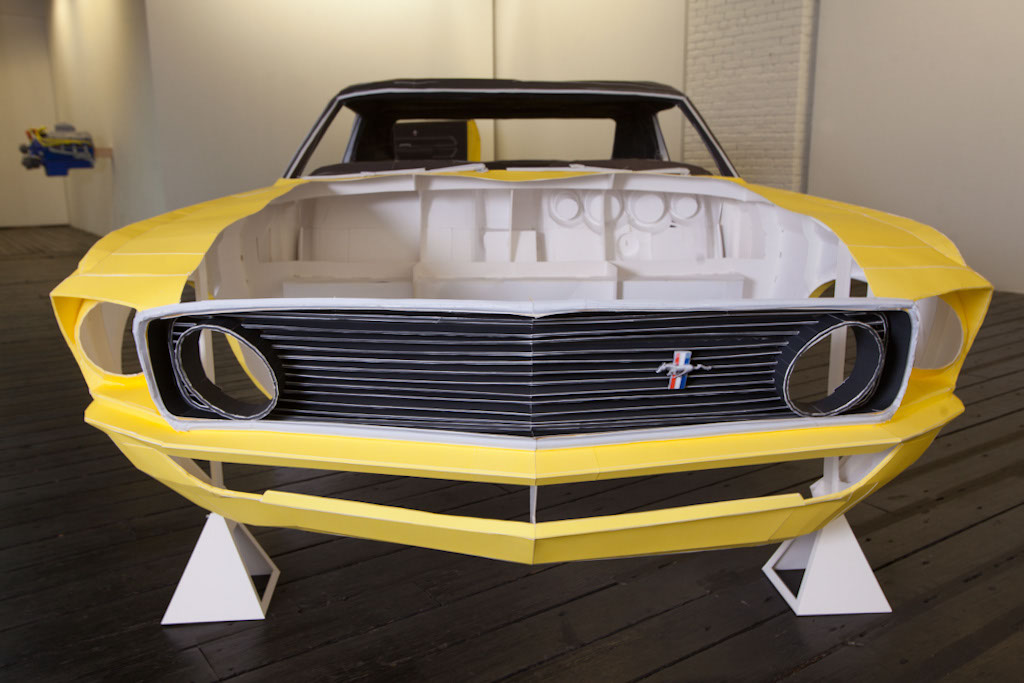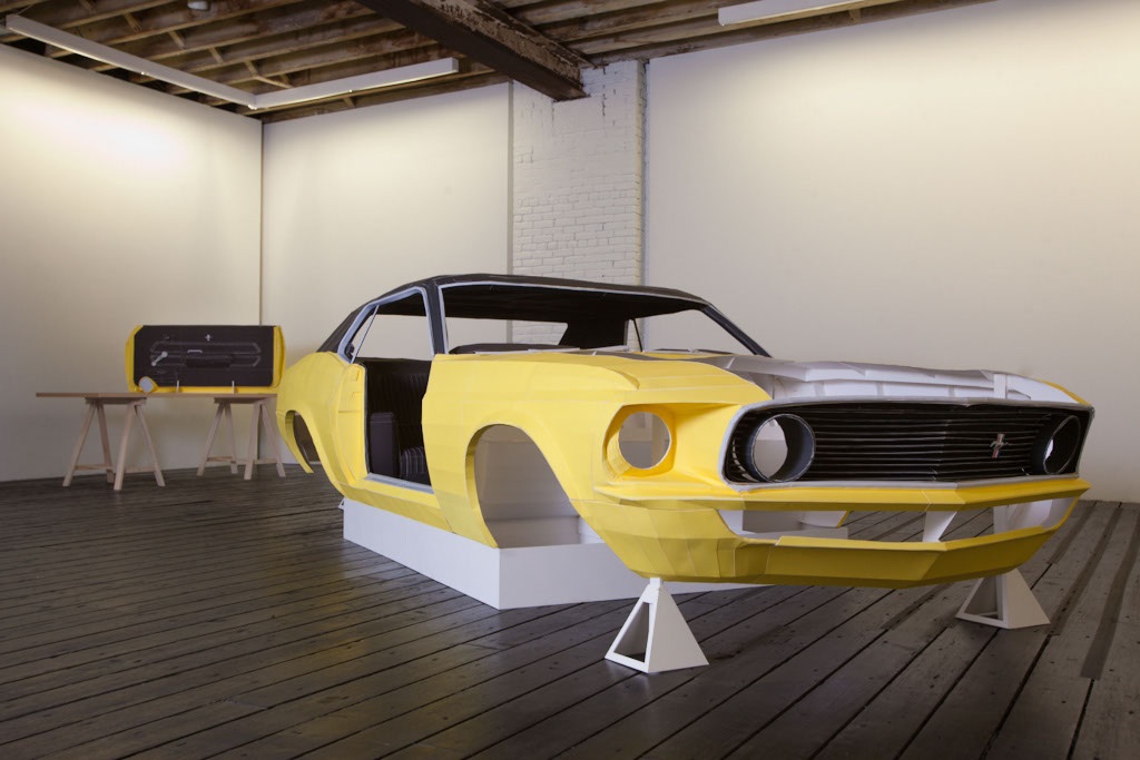 We previously wrote about Brooklyn artist Jonathan Brand and his amazing full scale 1:1 copy of a 1969 Ford Mustang built completely out of paper which he titled ‘One Piece At A Time’. To follow up from our previous post we have come across several more images of his work which he proudly displayed at the Hosfelt Gallery in New York back in September of last year.