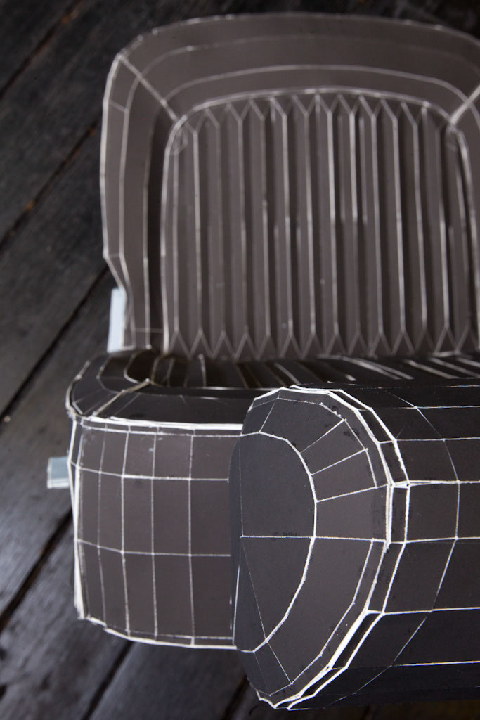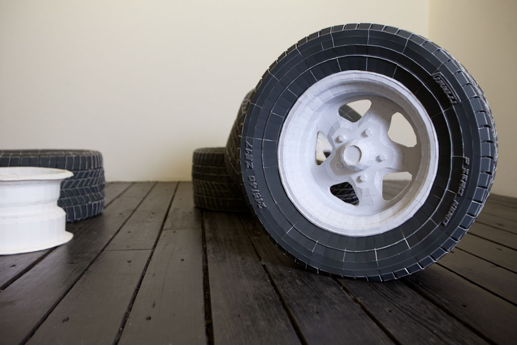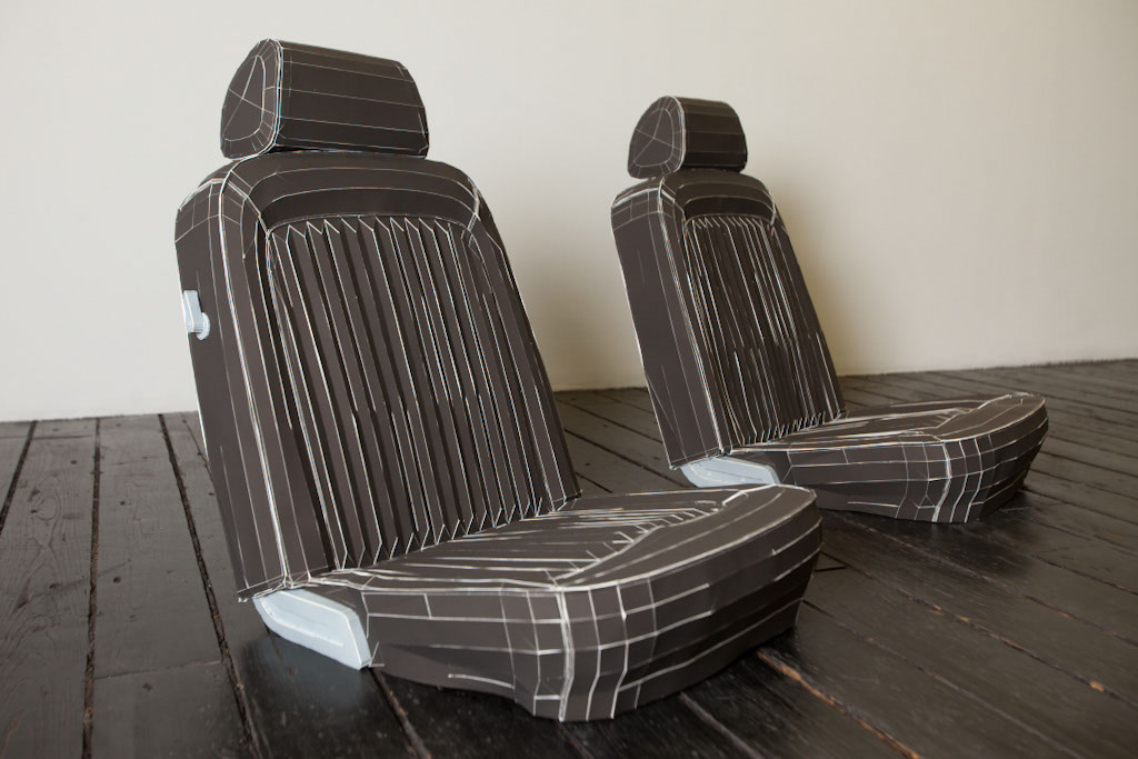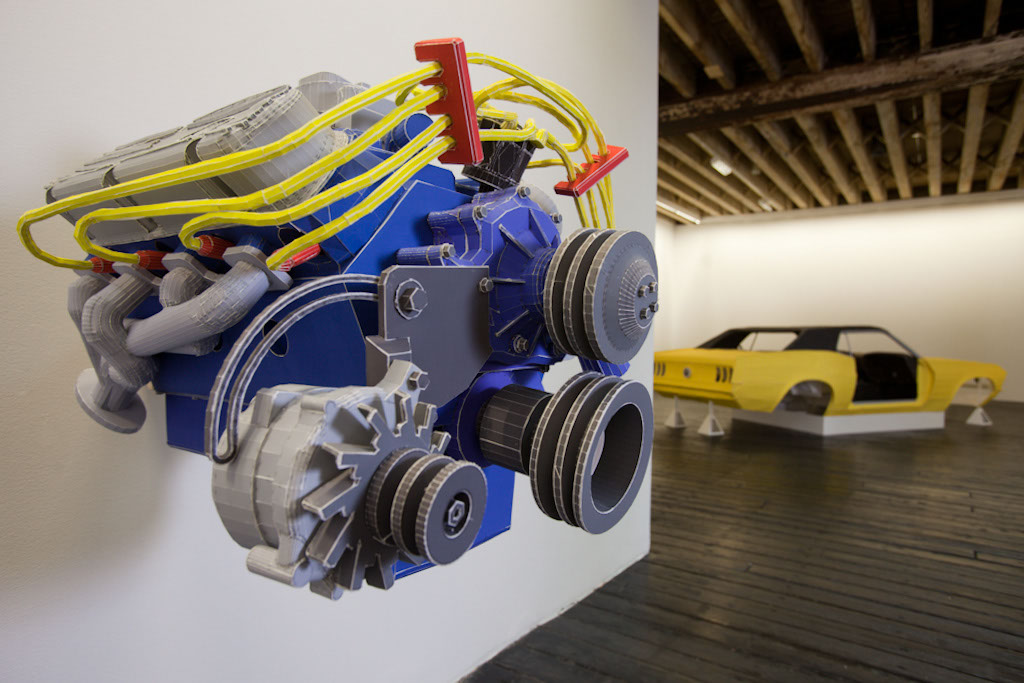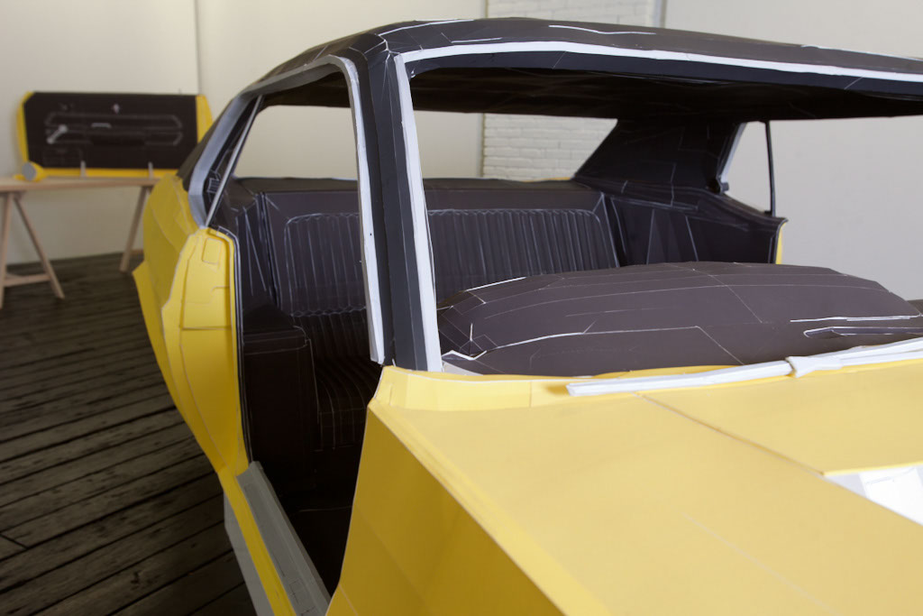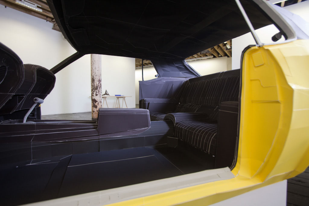 We previously wrote about Brooklyn artist Jonathan Brand and his amazing full scale 1:1 copy of a 1969 Ford Mustang built completely out of paper which he titled ‘One Piece At A Time’. To follow up from our previous post we have come across several more images of his work which he proudly displayed at the Hosfelt Gallery in New York back in September of last year.