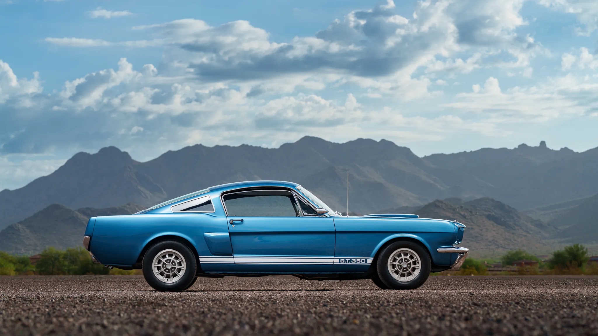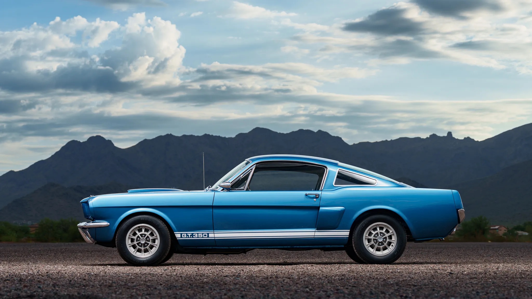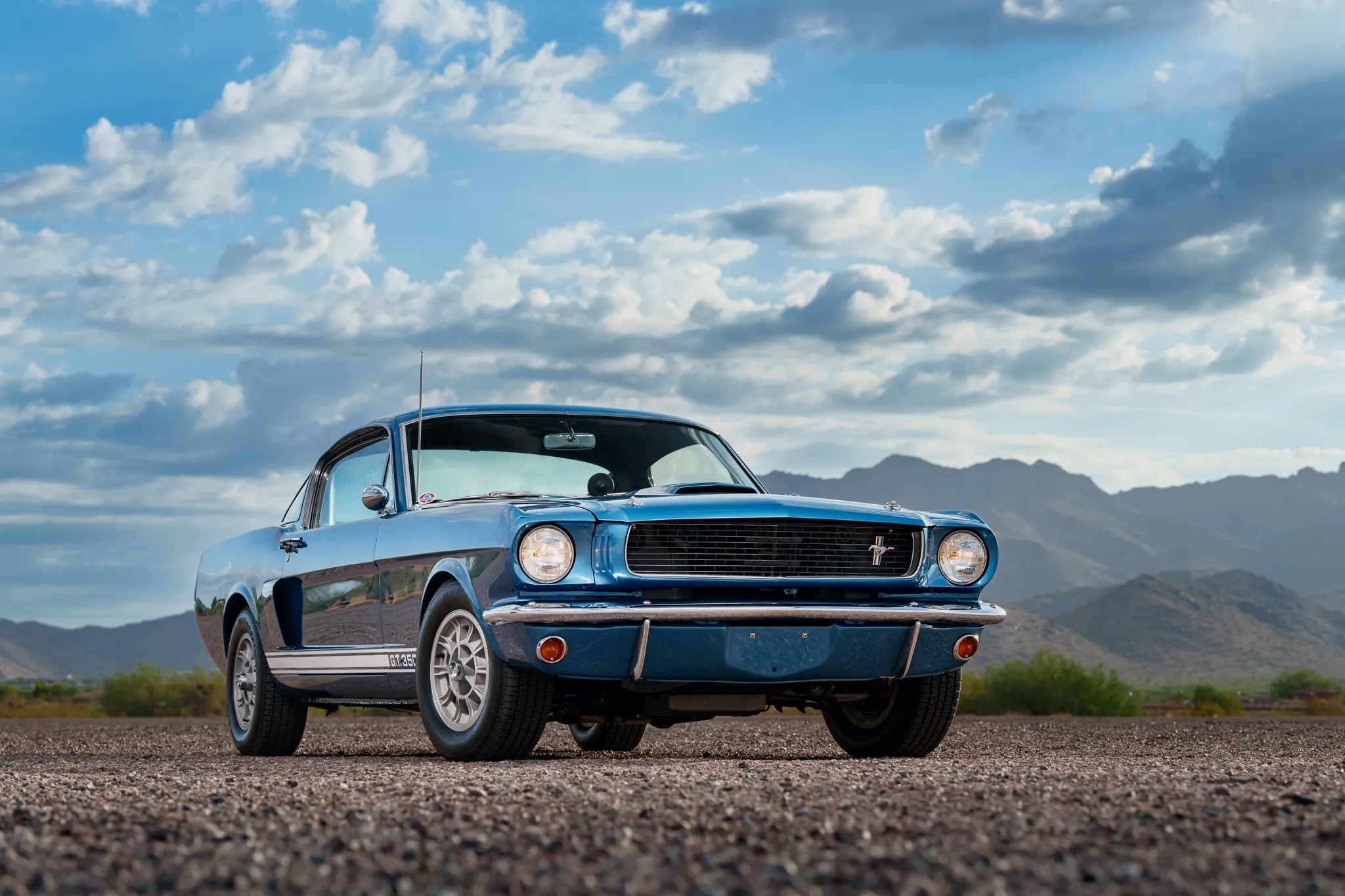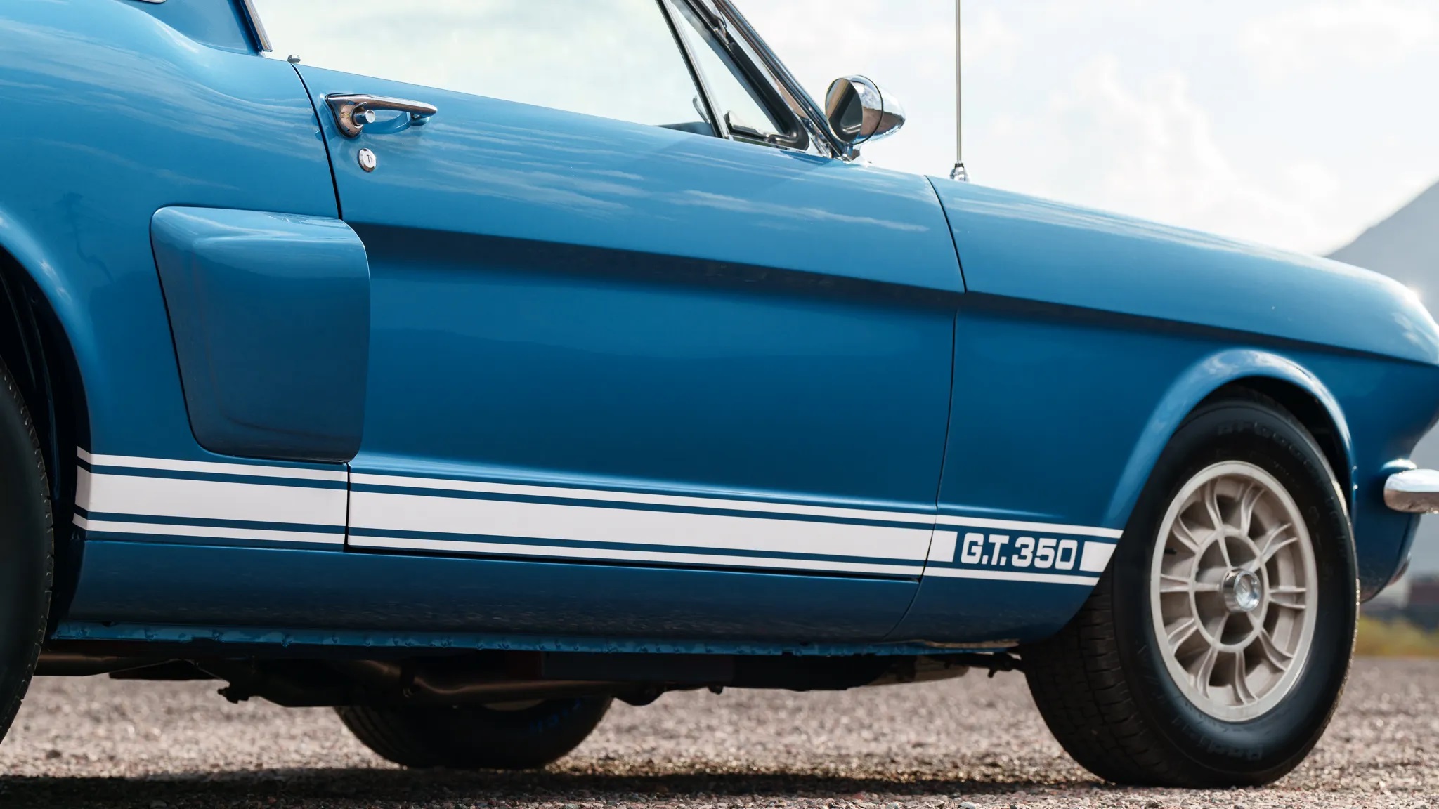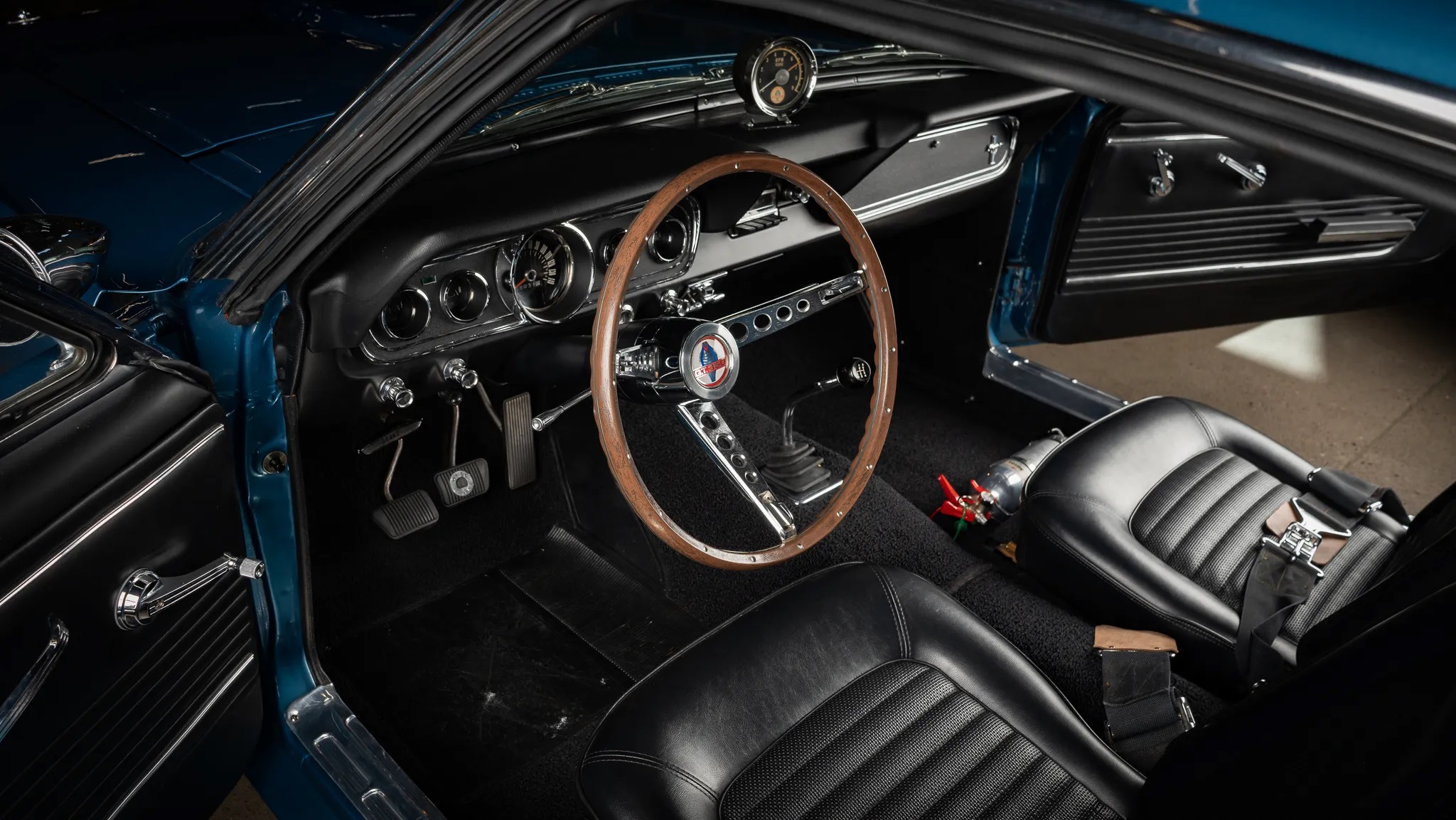 This particular 1966 Shelby GT350, chassis SFM6S798, was ordered on January 20, 1966, and initially delivered to Young Motor Company in Charlotte, North Carolina. It was specified in Sapphire Blue with optional 14″ alloy wheels and rear seats, as confirmed by a copy of its original invoice.