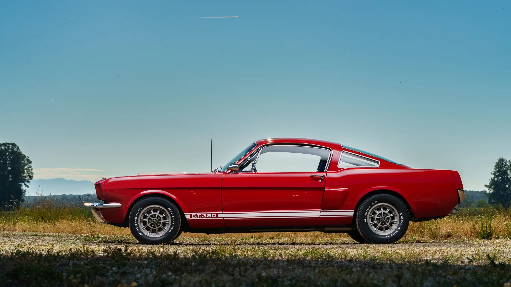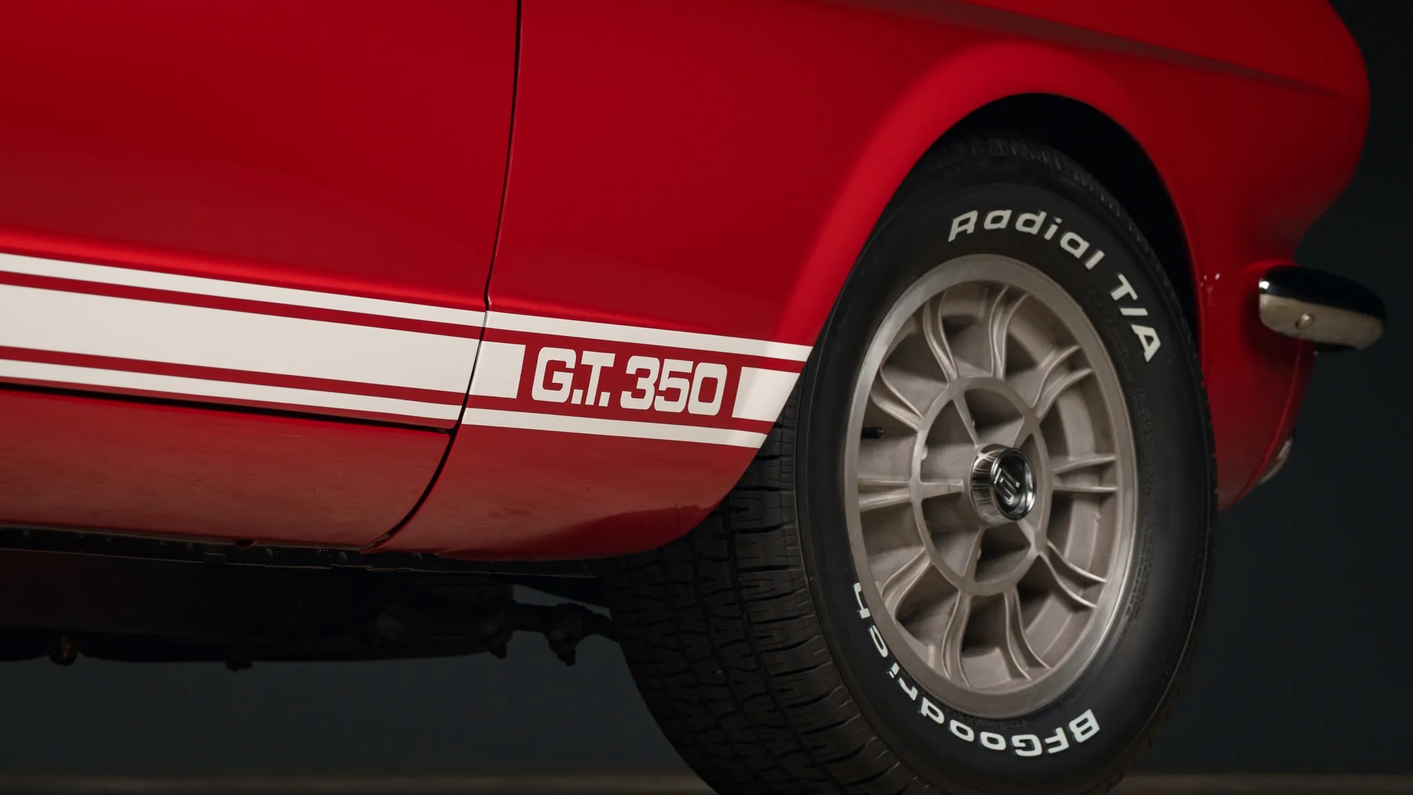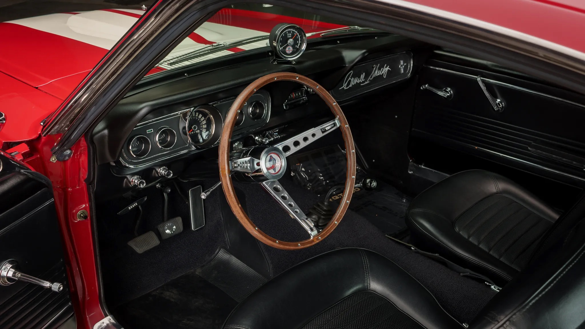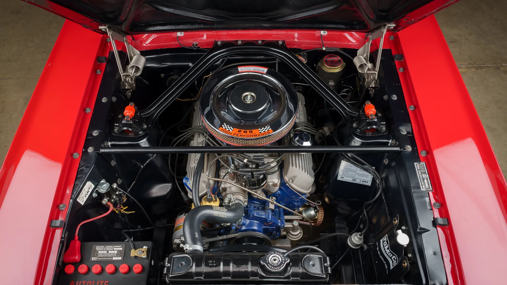 This car, finished in Candy Apple Red with cast alloy wheels and a Sport Deck rear seat, had four owners in Oregon before being bought by its current owner in Washington in 2005. It was refurbished in 2006, repainted in its original color with white stripes, and powered by a 289ci HiPo V8 paired with a T-10 four-speed manual transmission.
