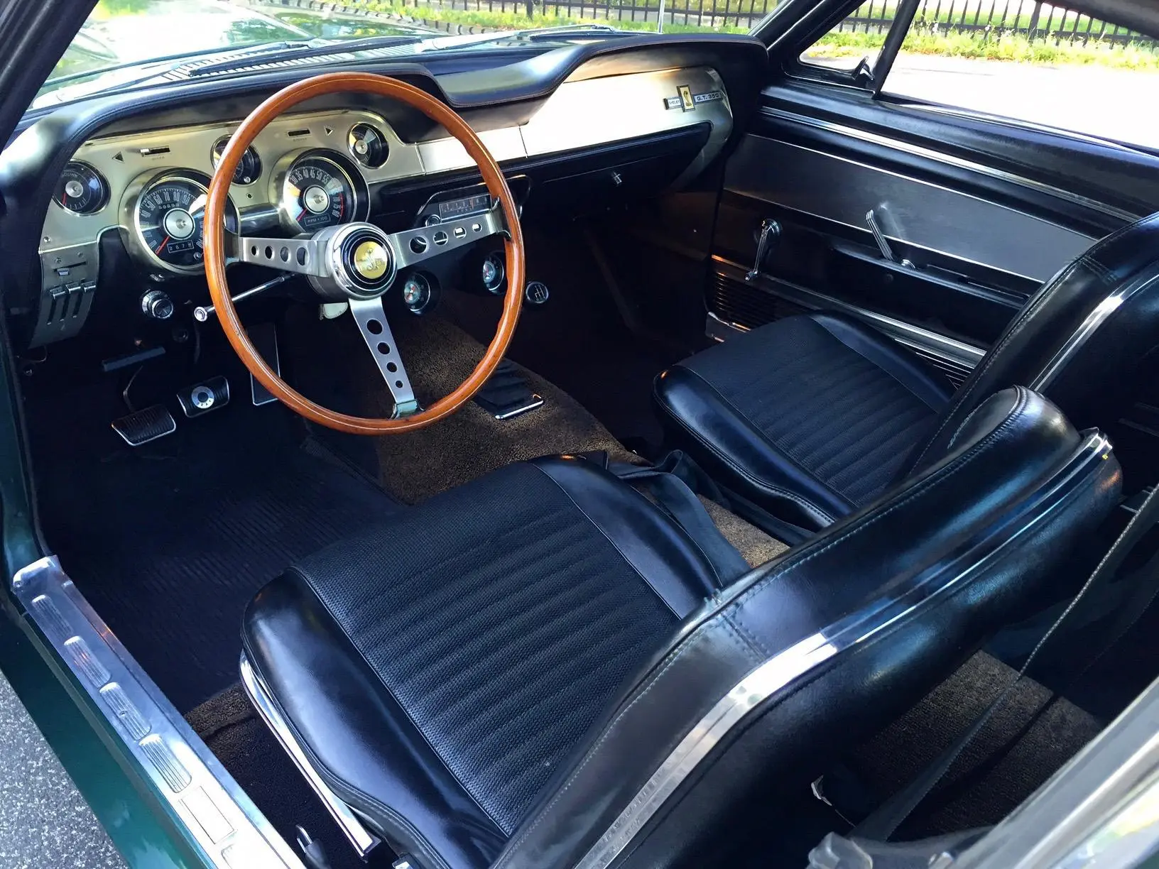 According to the seller, the vehicle retains its original 289ci HiPo V8 engine, manual transmission, and 3.89:1 rear differential. It also comes with other notable features, such as Dark Moss Green paint, power-assisted steering, power front disc brakes, 15” Magstar wheels, shoulder harnesses, Stewart Warner auxiliary gauges, black upholstery, a fold-down rear seat, and a push-button AM radio.