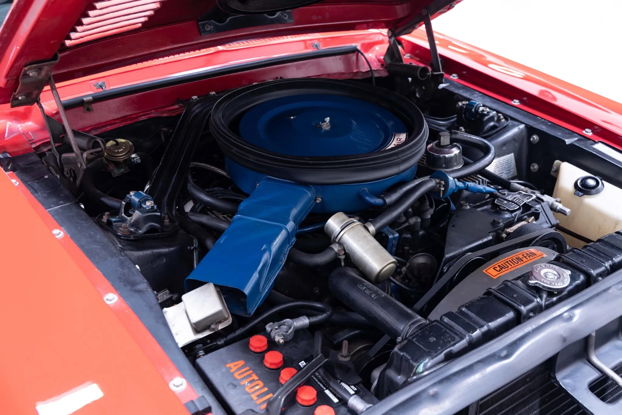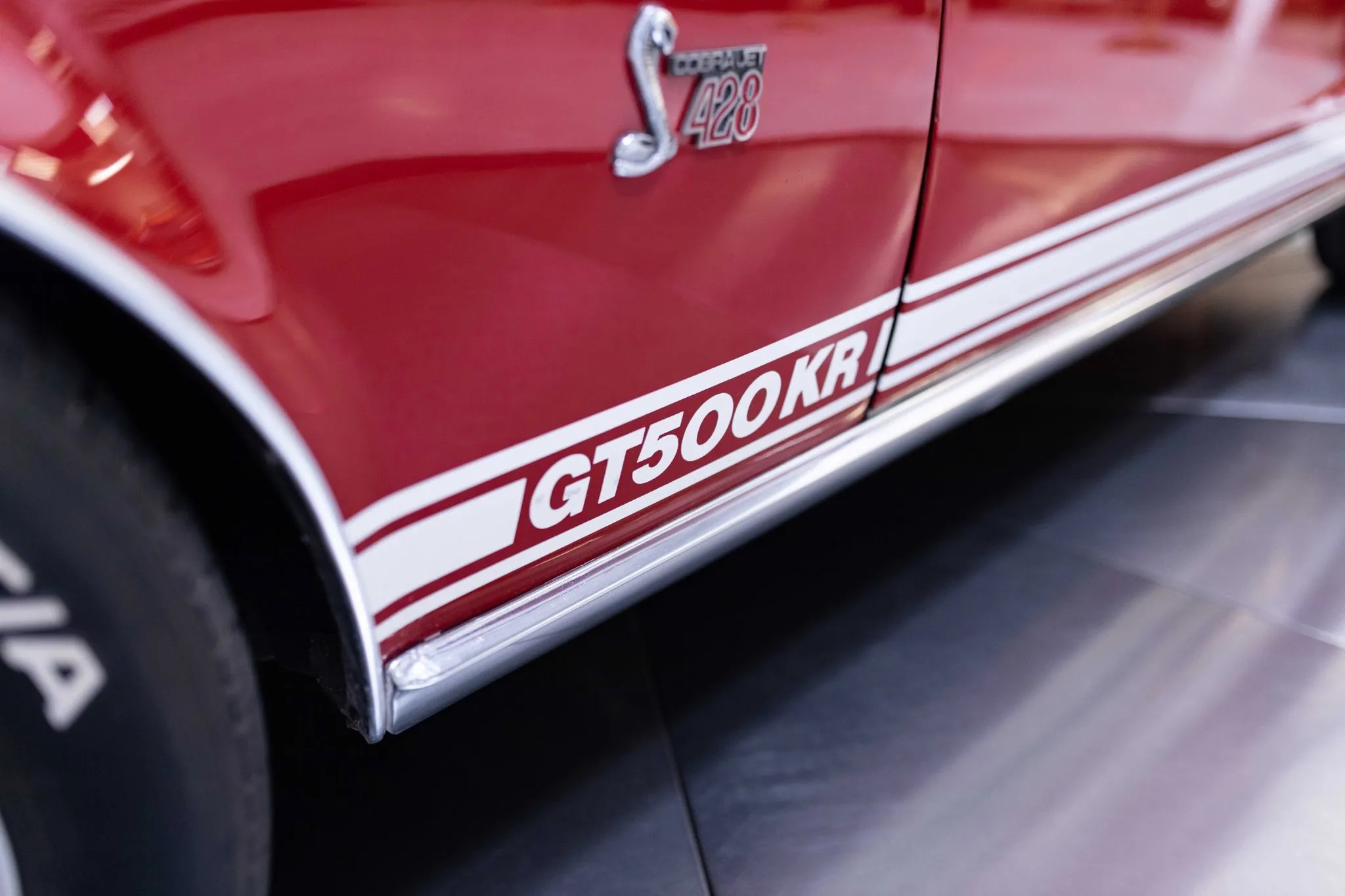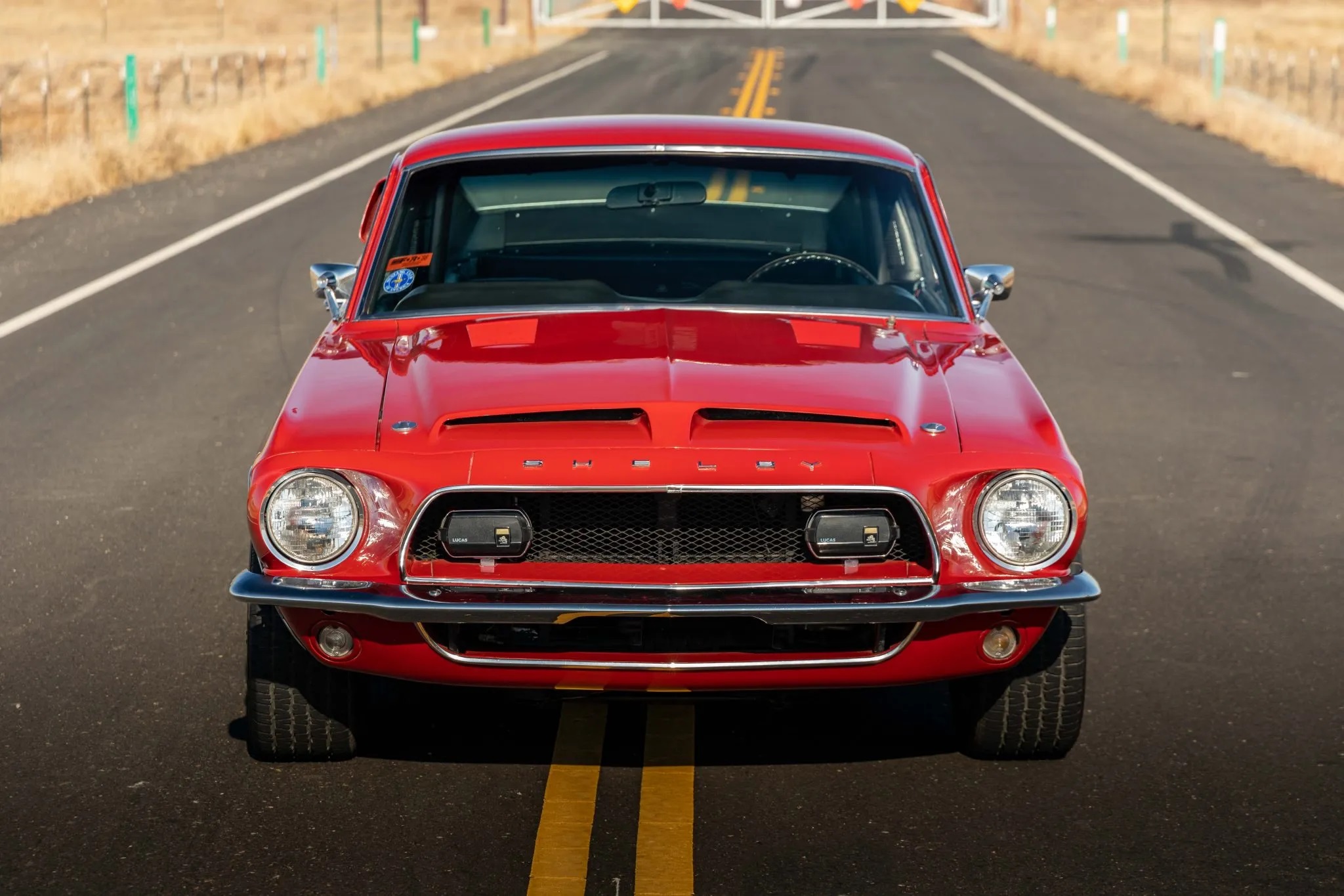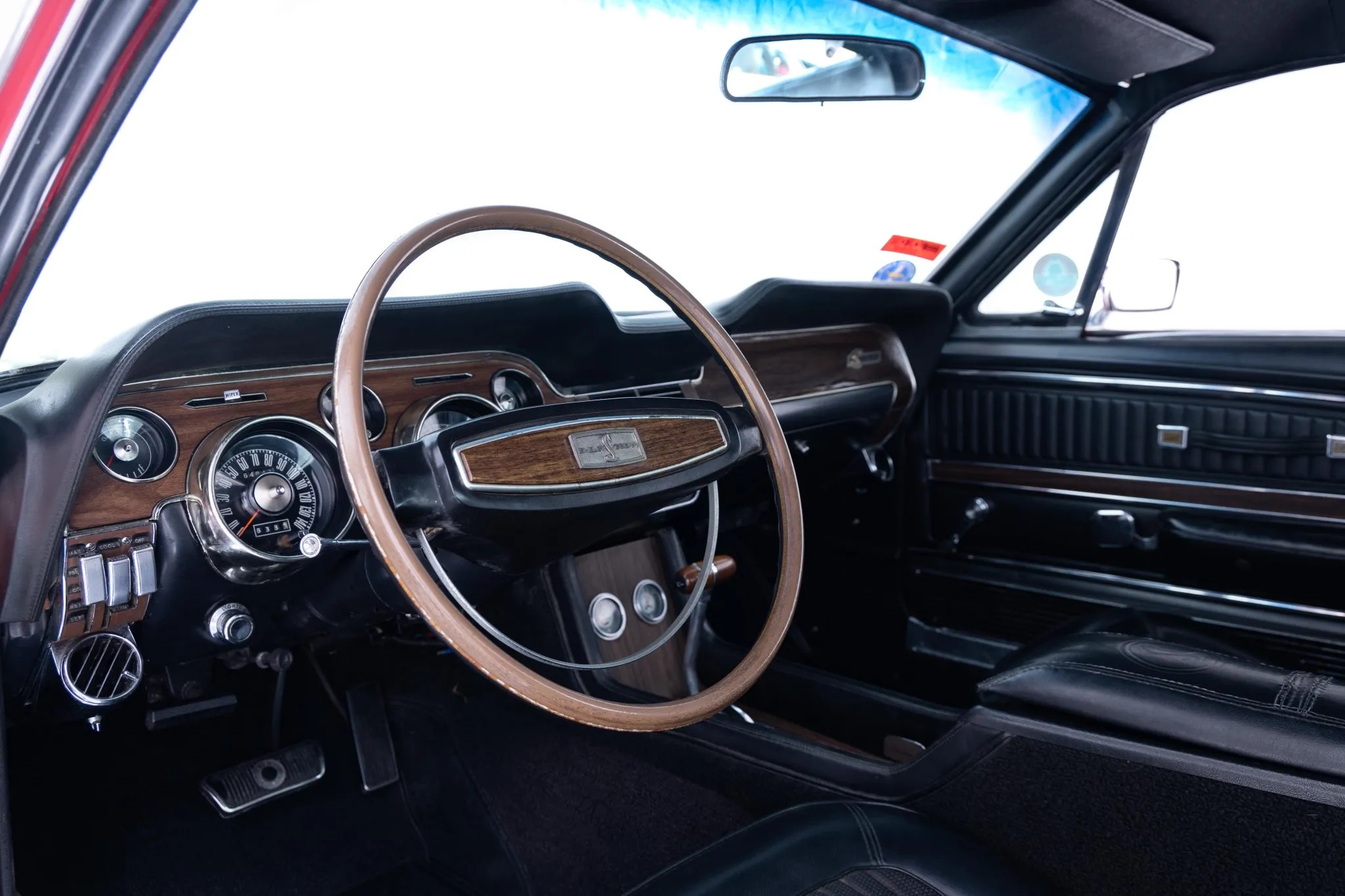 The 1968 Shelby Mustang GT500KR you see here is one of only 1,053 “King of the Road” fastbacks produced. The car has been refinished in red over black and it features a 428ci Cobra Jet V8 paired with a three-speed automatic transmission, along with 15″ 10-spoke wheels, woodgrain interior trim, folding rear seats, and an AM radio.