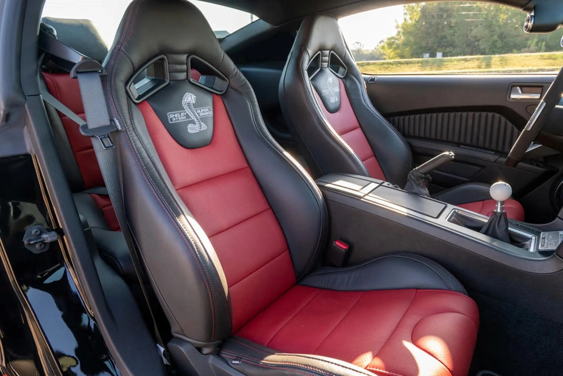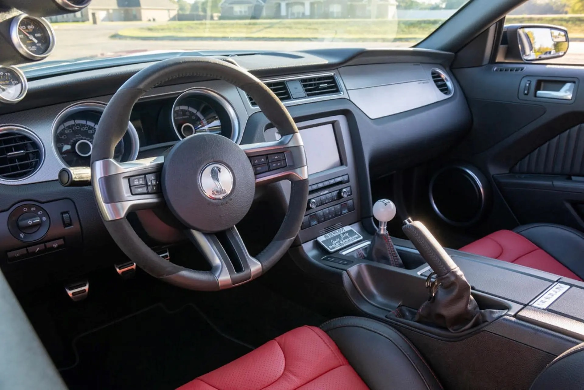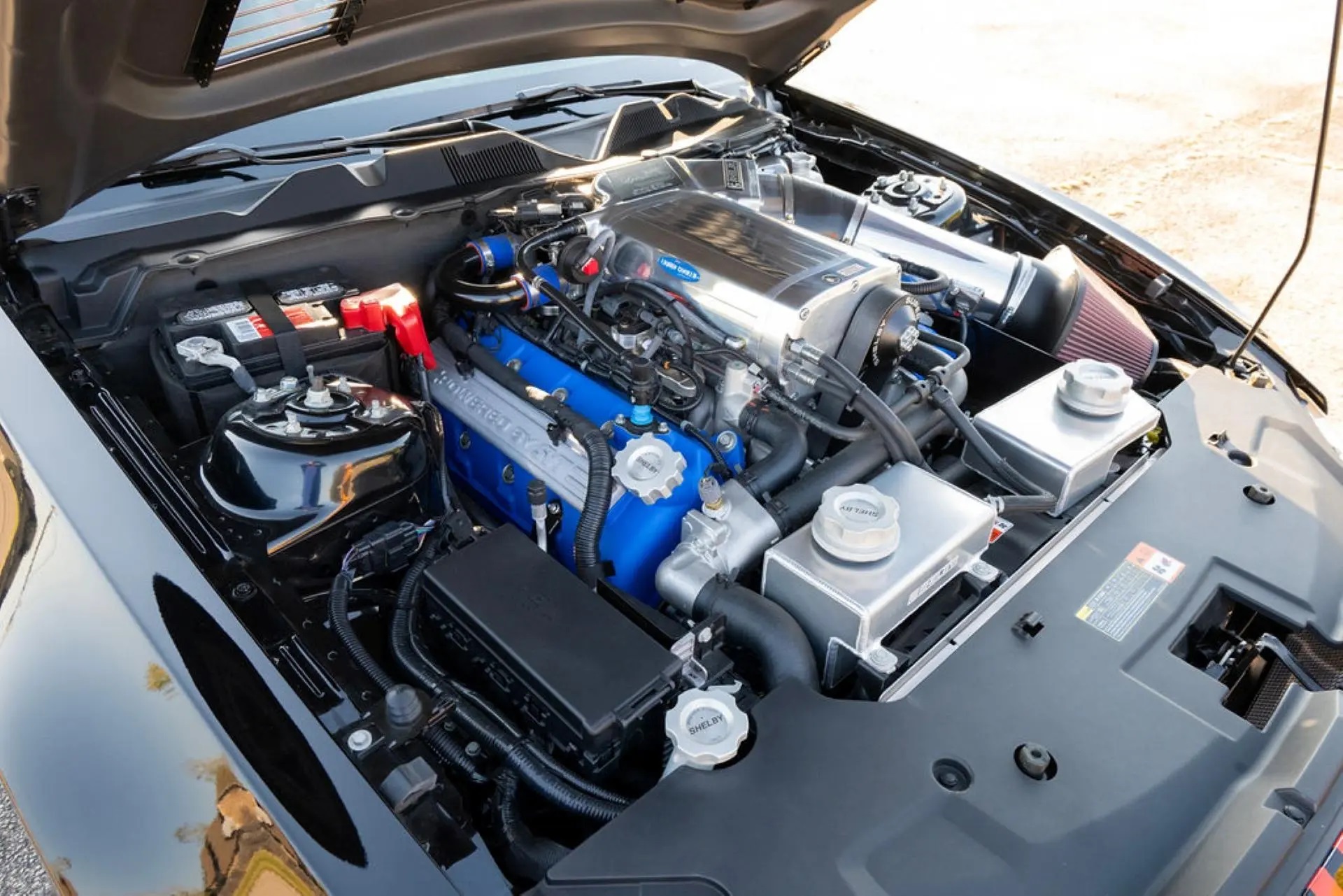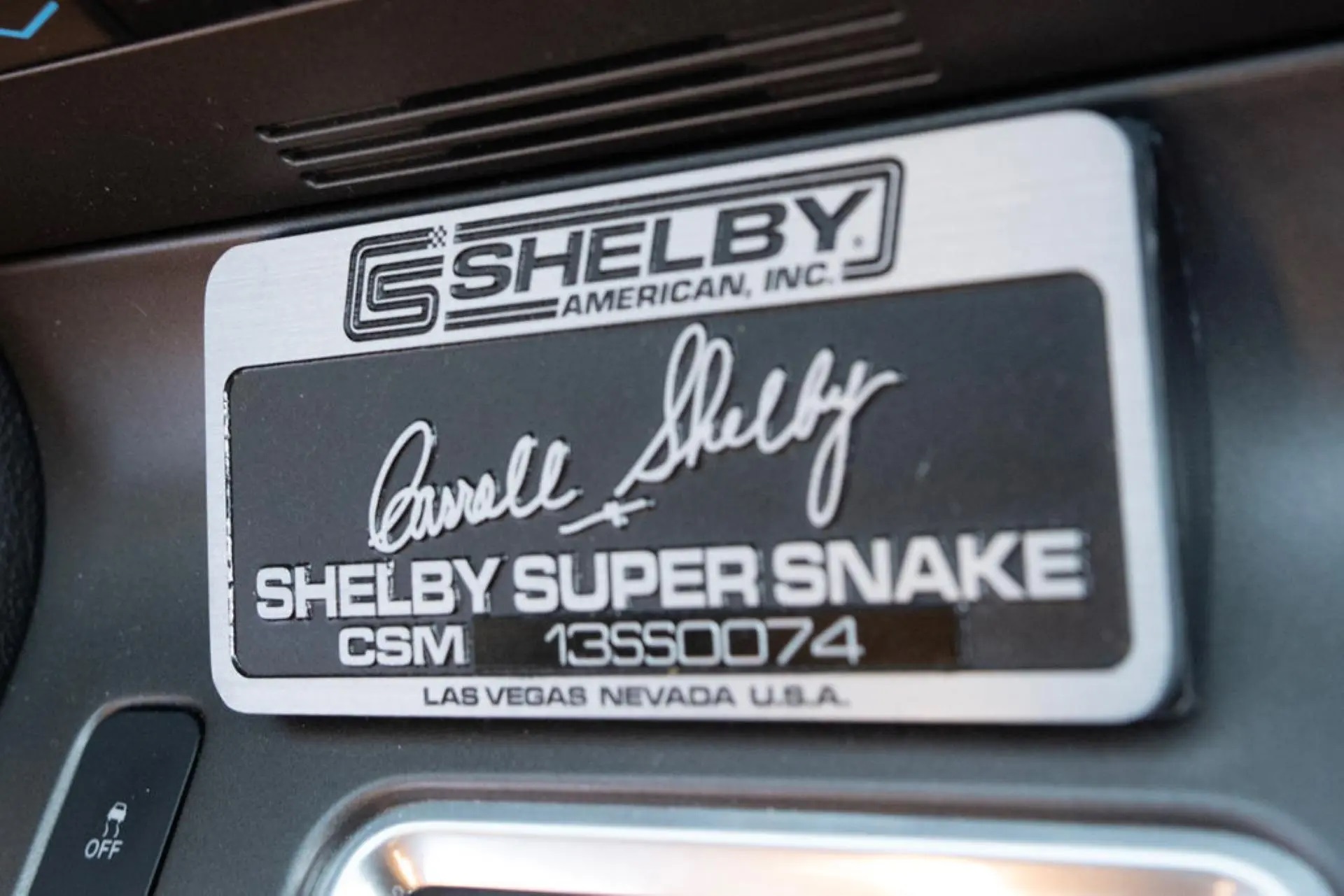 With fewer than 2,000 miles on the odometer, it houses a 5.8-liter V8 engine equipped with a 3.6-liter Kenne Bell supercharger, delivering an impressive 850 horsepower. This power pushes the Super Snake to speeds exceeding 200 MPH. A Tremec 6-speed manual transmission with a short-throw shifter, a 3.31:1 rear differential, heavy-duty axles, Shelby-tuned suspension, and Shelby/Wilwood brakes with 6-piston front and 4-piston rear calipers complete the performance upgrades.