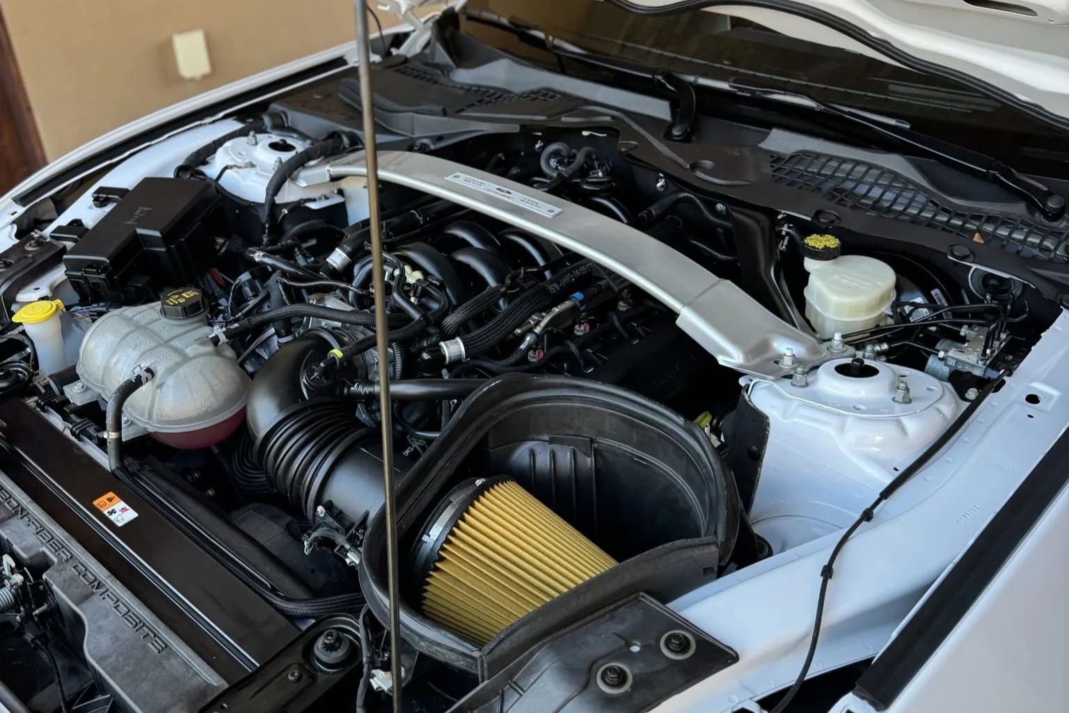 This GT350R, listed on Bring A Trailer with just 578 miles, is finished in Oxford White with an Ebony cloth and Miko suede interior. Its 5.2L Voodoo V-8, rated at 526 HP and 429 lb-ft of torque, is paired with a Tremec TR-3160 manual transmission and 3.73 Torsen differential. Additional highlights include Magneride damping, Brembo brakes, and independent rear suspension.