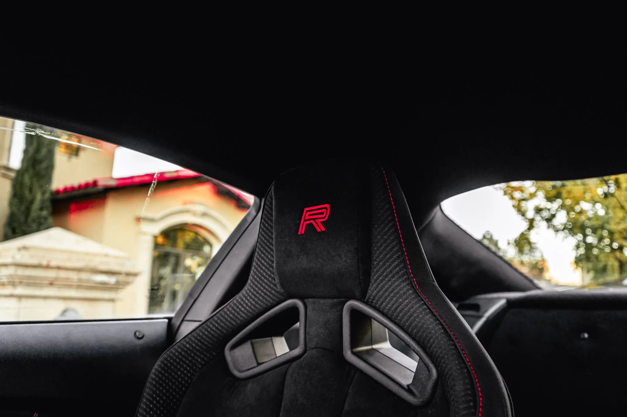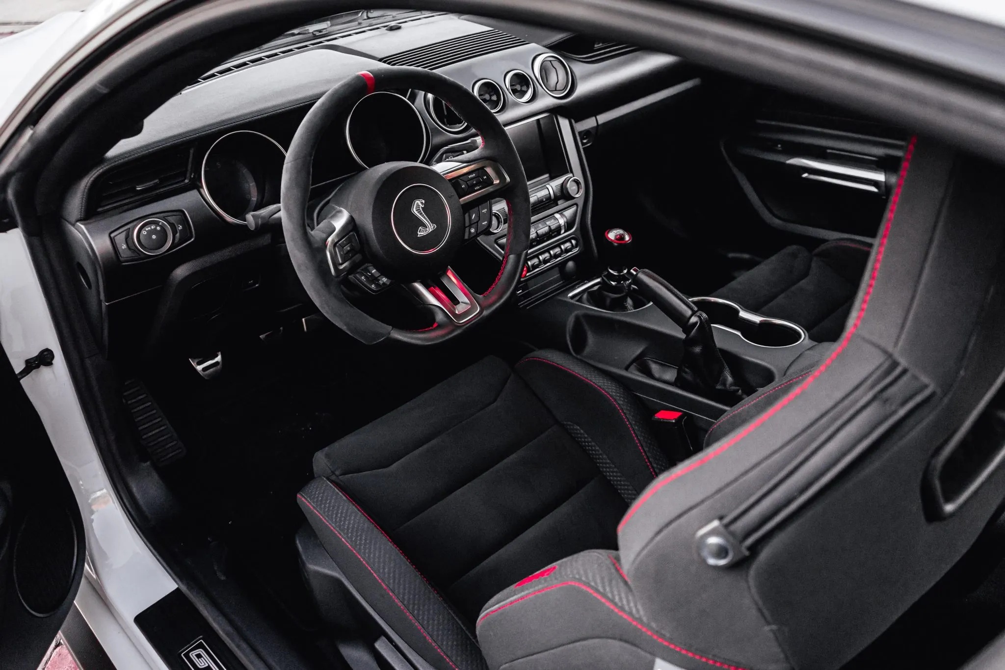 With a wailing exhaust note to match, the Voodoo engine produces 526 HP, making it Ford’s most powerful naturally aspirated production engine to date. Power is sent through a lightweight Tremec TR-3160 6-speed manual transmission and a 3.73:1 Torsen limited-slip differential. Performance is impressive, with a 0-60 MPH time of 4.3 seconds and a quarter-mile in 12.5 seconds at 117 MPH. The GT350R also boasts 0.98 G of lateral acceleration and can brake from 70 MPH to 0 in just 152 feet.