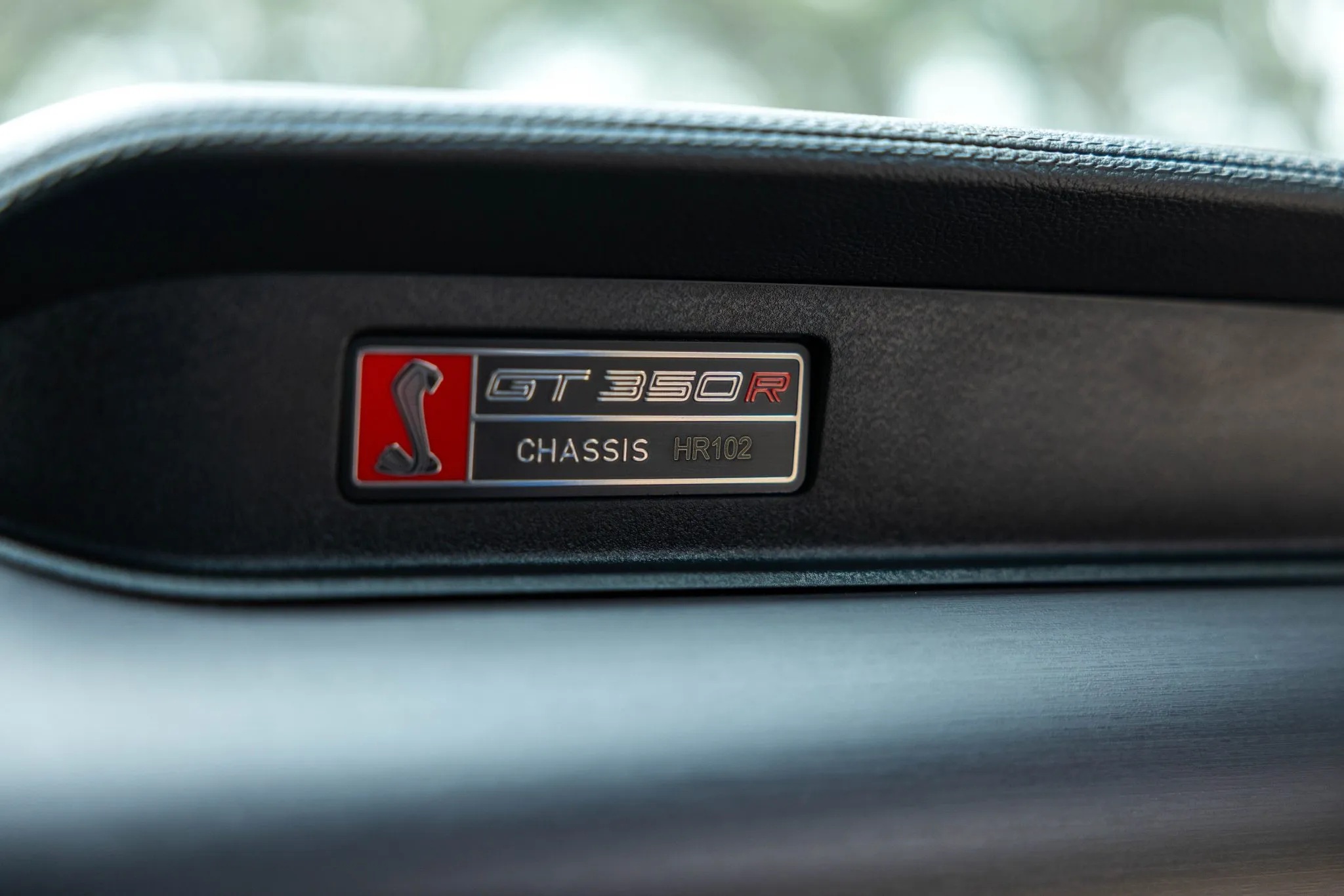 The flat-plane crank Voodoo V8 is paired with a six-speed Tremec TR-3160 manual transmission and a 3.73:1 Torsen limited-slip differential. Additional cooling systems for the engine, transmission, and differential come standard. Currently listed for sale on Bring a Trailer, this low-mileage GT350R presents a rare opportunity for collectors and enthusiasts alike. The car comes with a clean Carfax report, title, and reproduction window stickers.