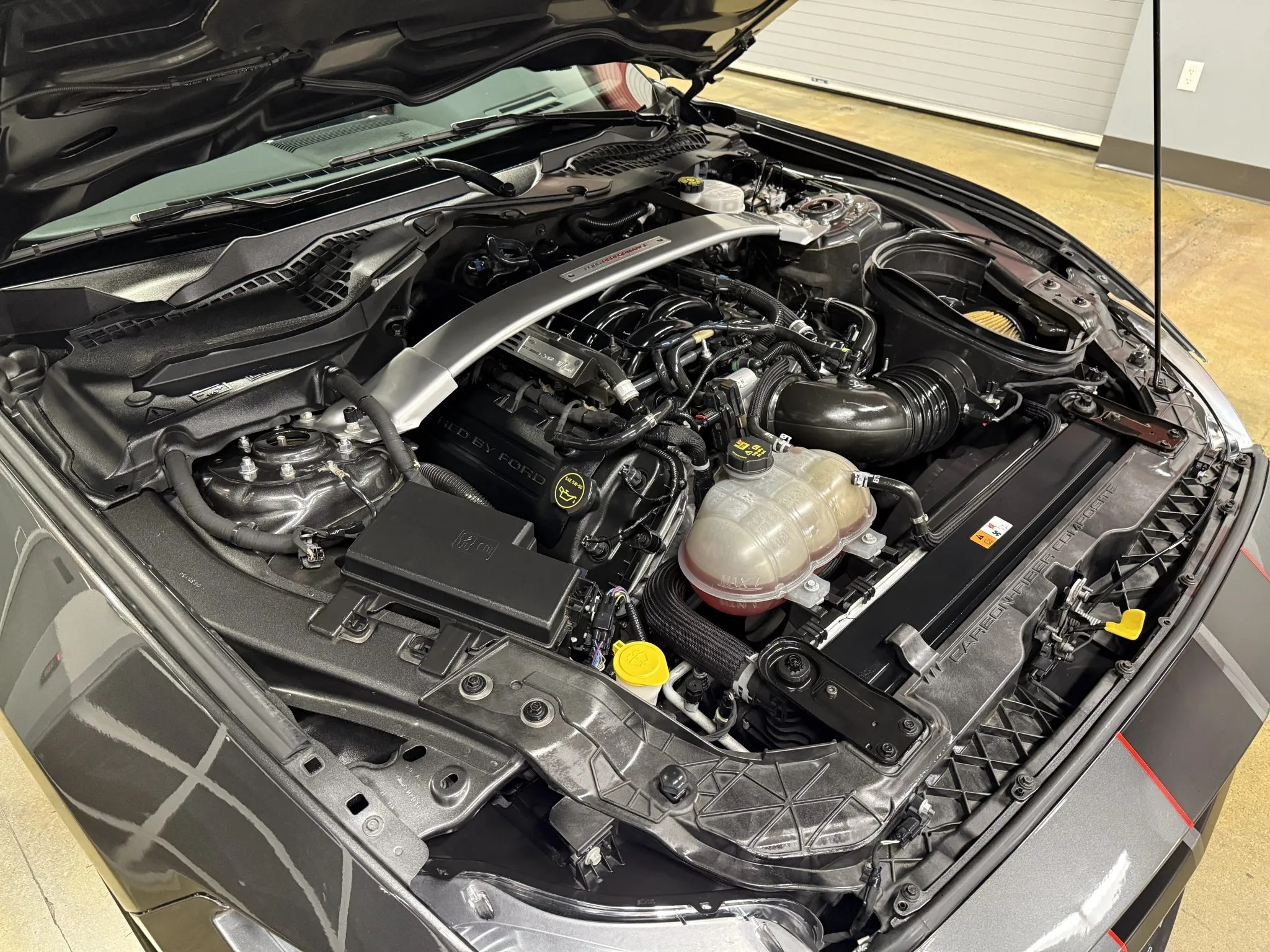 Widely considered the pinnacle of Ford’s muscle car lineage, the GT350R is powered by the most advanced naturally aspirated engine ever installed in a Mustang. At its heart lies the 5.2L “Voodoo” V8 engine, a 32-valve powerhouse featuring a flat-plane crankshaft—a unique design exclusive to the GT350. Engineered for sustained high-speed performance, the Voodoo delivers 526 horsepower at an exhilarating 7,500 RPM. This configuration enhances exhaust flow, improves high-speed balance, and contributes to the car’s unique auditory signature.