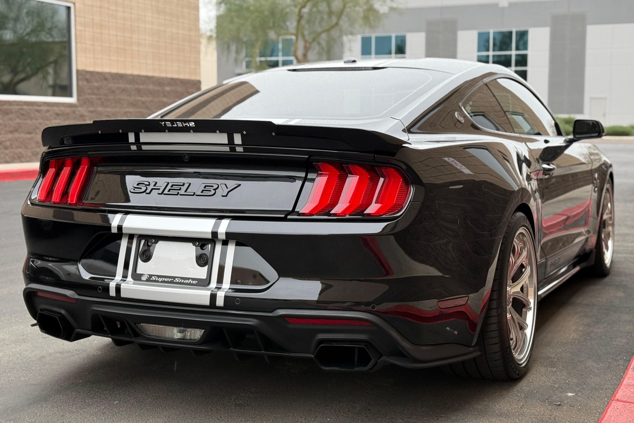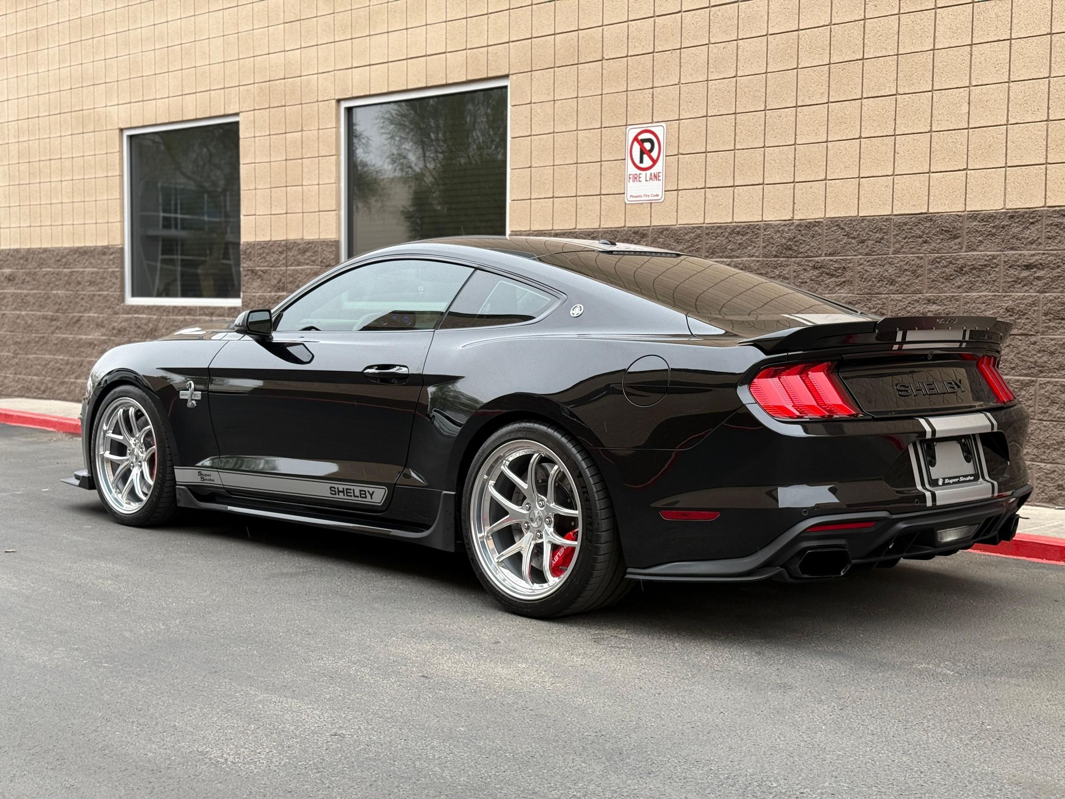 It retains factory amenities such as LED taillights with sequential turn signals, Track Apps with Line Lock, SYNC 3 infotainment, dual-zone climate control, and a premium audio system while receiving substantial performance upgrades. Under the hood, a supercharged 5.0-liter V8 delivers 825 horsepower, courtesy of a polished Whipple supercharger, Shelby Performance tune, upgraded intake, throttle body, and cooling system. A Borla variable exhaust, performance driveshaft, and reinforced half shafts enhance power delivery.