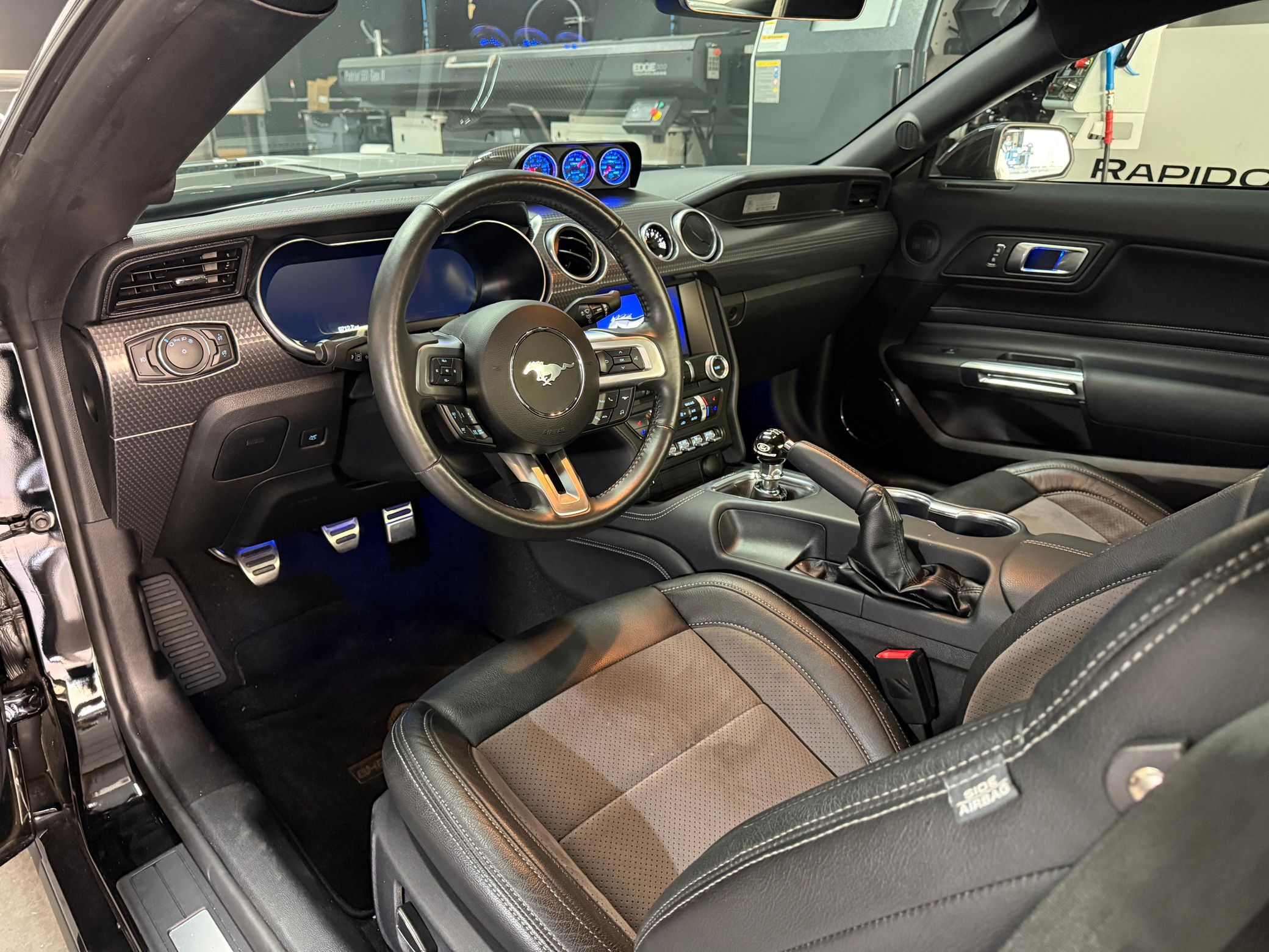 The Shelby Performance suspension and Brembo braking system refine handling, while the exterior receives aggressive Shelby styling, including a ram air hood, racing stripes, and custom front fascia. Inside, it boasts custom leather seating, a short-throw shifter, and auxiliary dash gauges.