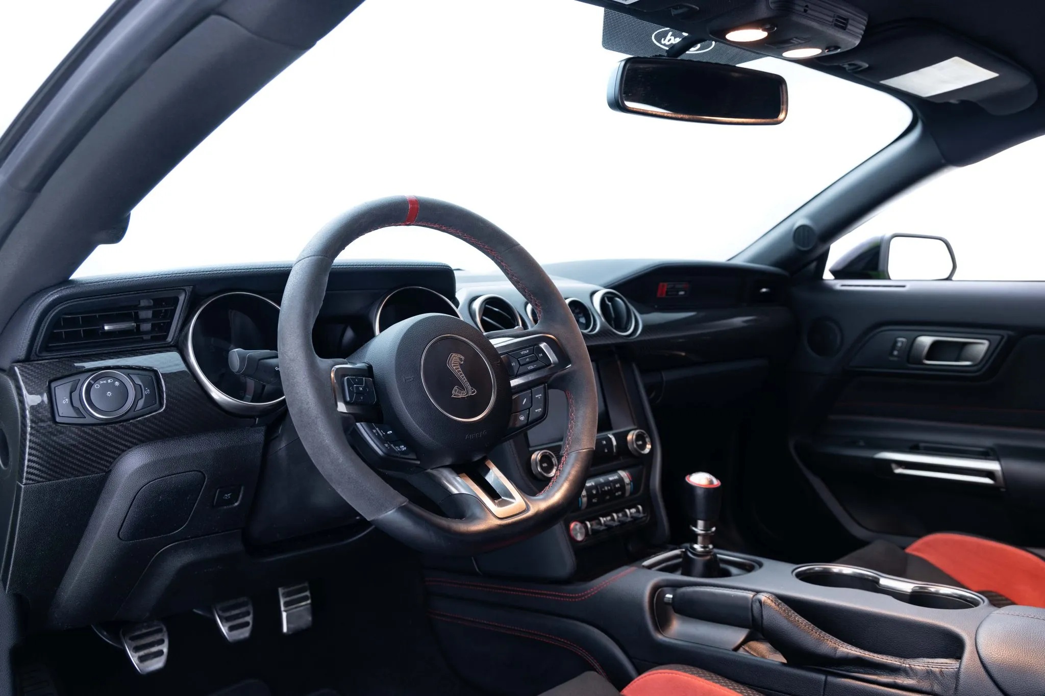 The Technology Package enhances the experience with cross-traffic alert, navigation, and a Bang & Olufsen premium sound system. A short-throw shifter and comprehensive instrumentation dominate the cabin, emphasizing the car’s performance focus.