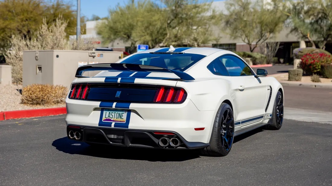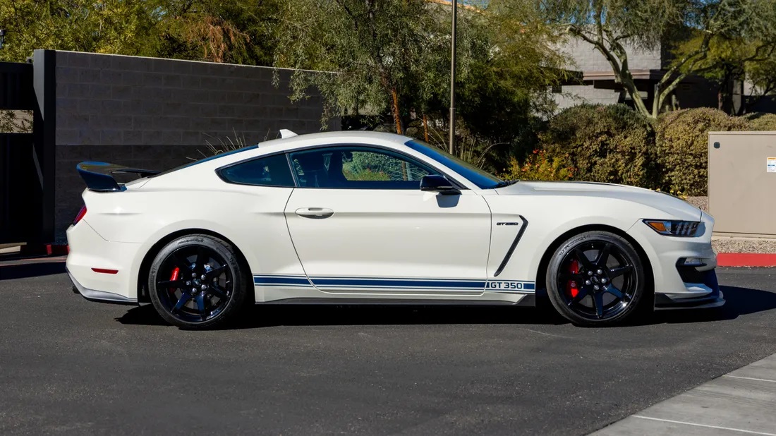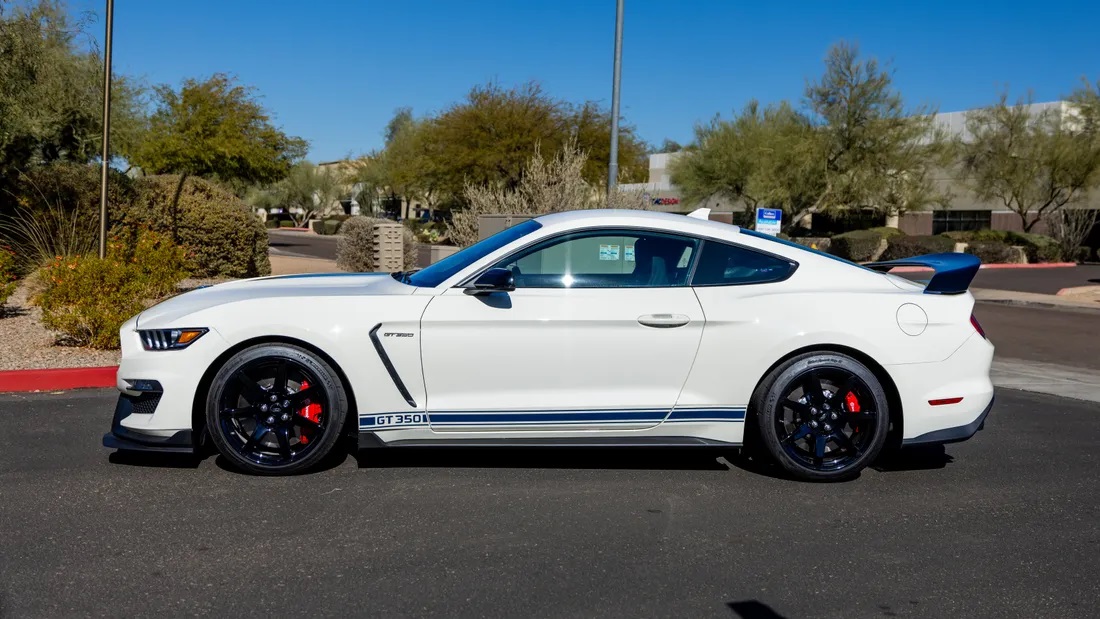 One of the final 2020 GT350R models, a Heritage Edition, is now listed for sale at Sotheby’s Motorsport. This example features the sought-after R Package, including 19-inch black-painted carbon fiber wheels, an adjustable rear wing, strut mounts, and staggered Michelin tires.