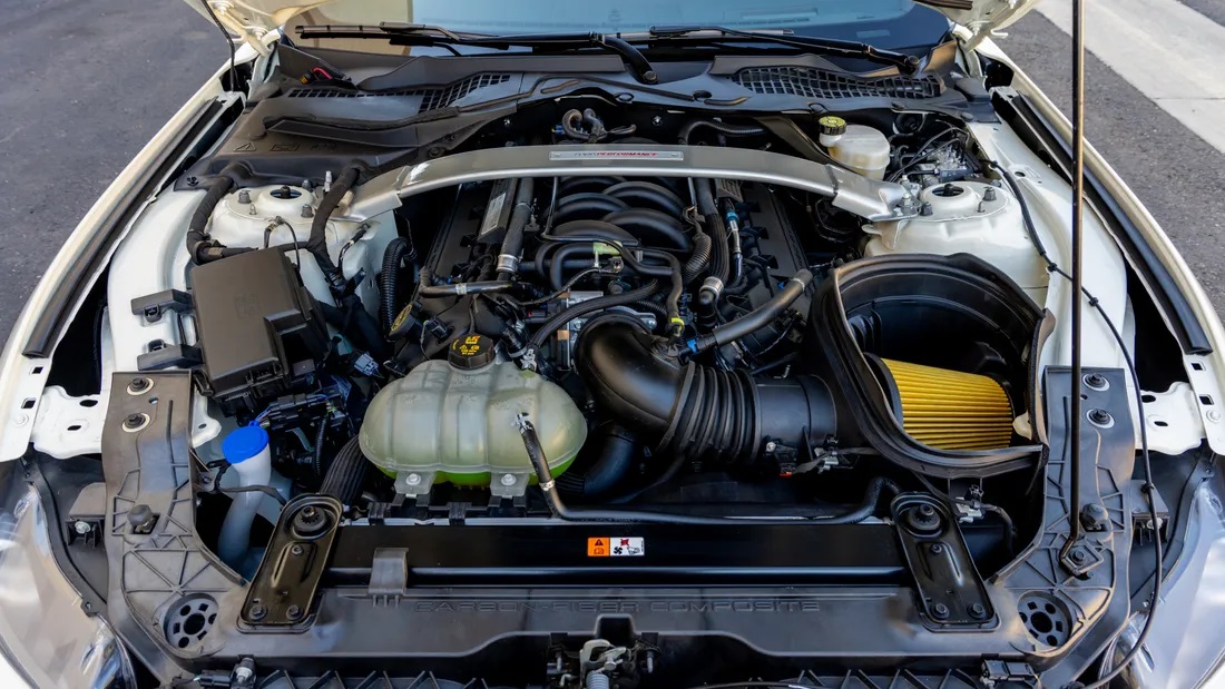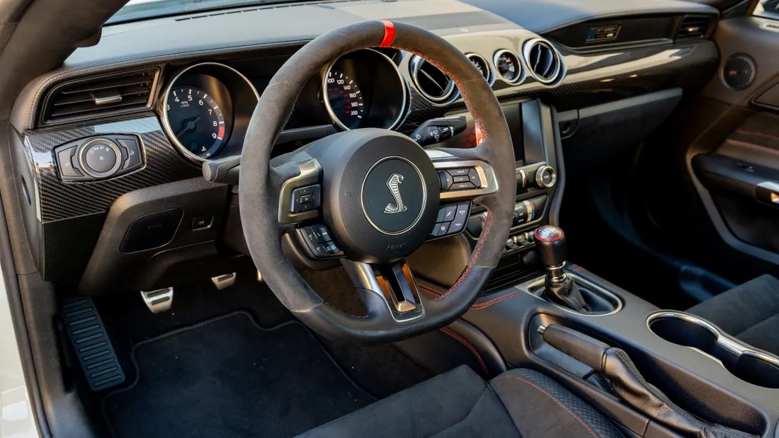 At the 2015 North American International Auto Show, Ford Performance unveiled the third-generation GT350R, a track-focused Mustang equipped with a 526-horsepower flat-plane crank V8. Engineered for performance, it featured a front splitter, carbon fiber rear wing, and lightweight carbon fiber wheels paired with Michelin Pilot Sport Cup 2 tires. The GT350R remained in production until 2020, with the final models paying homage to Carroll Shelby’s legendary 1965 GT350R.