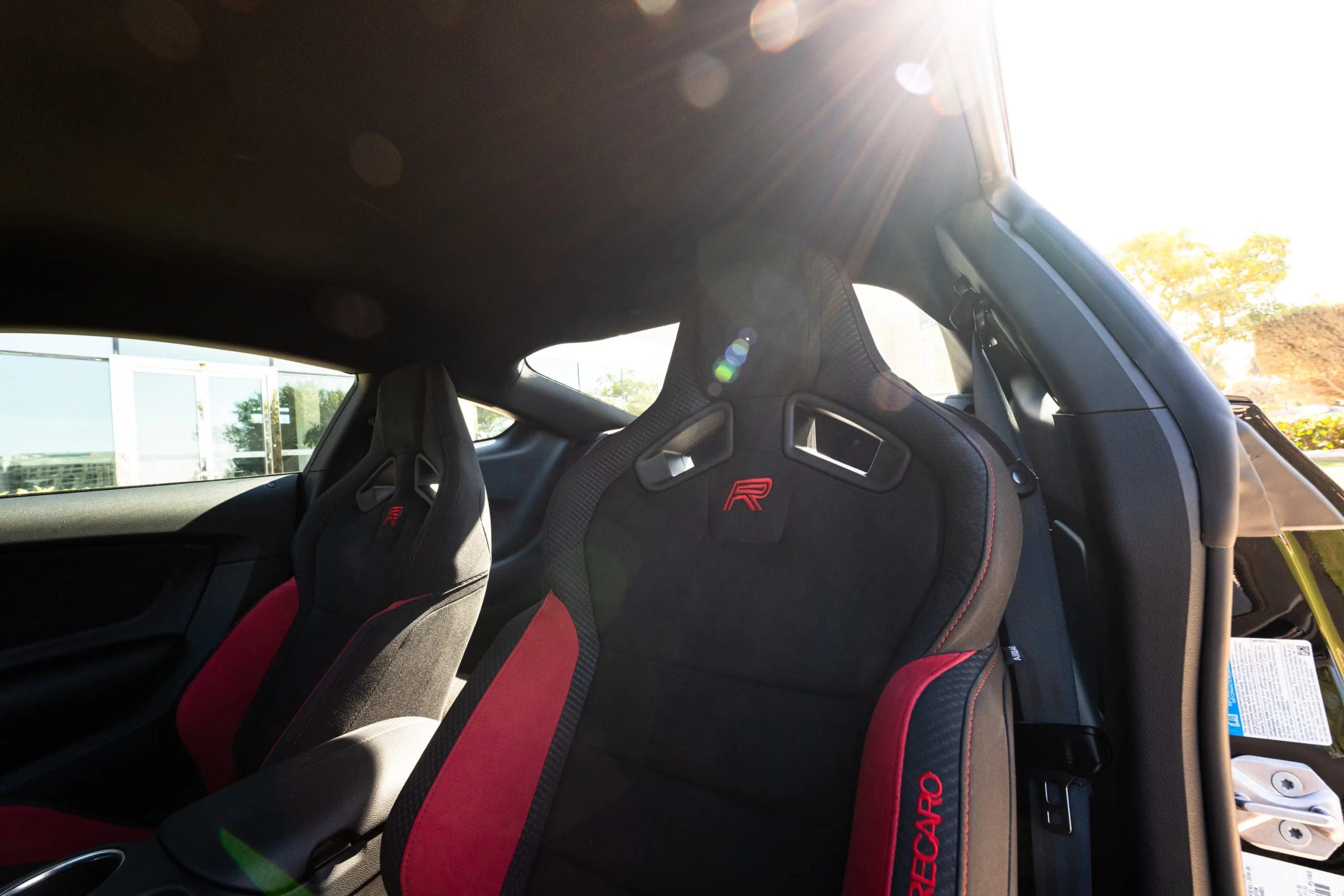 The interior is all about the driver, featuring Ebony cloth and Miko suede Recaro seats, a leather and Alcantara-wrapped steering wheel, and carbon-fiber trim. Modern conveniences include an 8-inch touchscreen with Apple CarPlay, Android Auto, navigation, and a nine-speaker premium audio system for those moments off the track.
