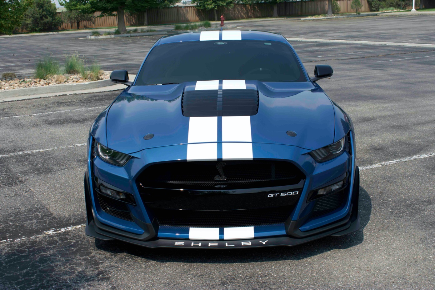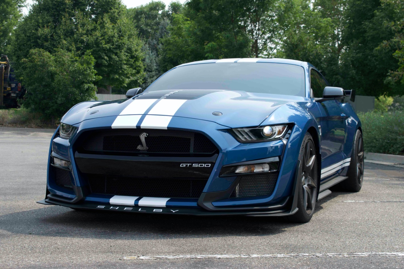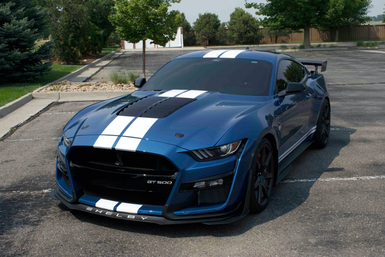 Listed with just 656 miles on Bring A Trailer, finished in Ford Performance Blue Metallic with Bright White stripes and Ebony and gray interior. Equipped with a supercharged 5.2L V8 engine producing 760 HP and a Tremec 7-speed dual-clutch transmission, this GT500 also features the Technology Package, Brembo brakes, Recaro seats, and carbon-fiber 20″ seven-spoke wheels.