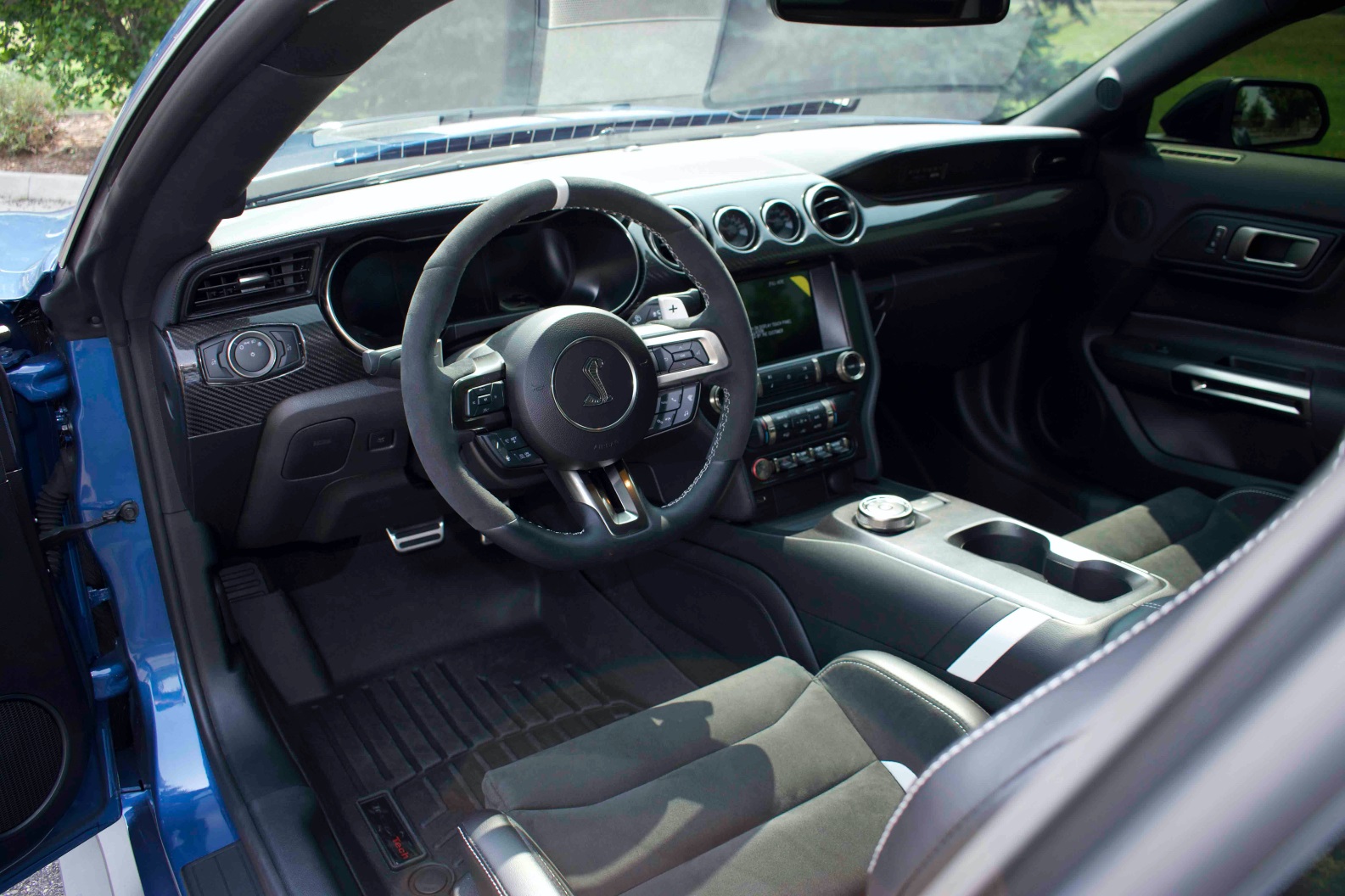 For the 2021 model year, the Carbon Fiber Track Pack was introduced, an $18,500 option that elevates the GT500’s track capabilities. This package includes 20-inch exposed carbon-fiber wheels with Michelin Cup Sport 2 tires, a carbon-fiber GT4 rear wing, adjustable strut top mounts, splitter wickers, carbon-fiber interior accents, rear seat removal, and Ebony leather-wrapped Recaro front seats.